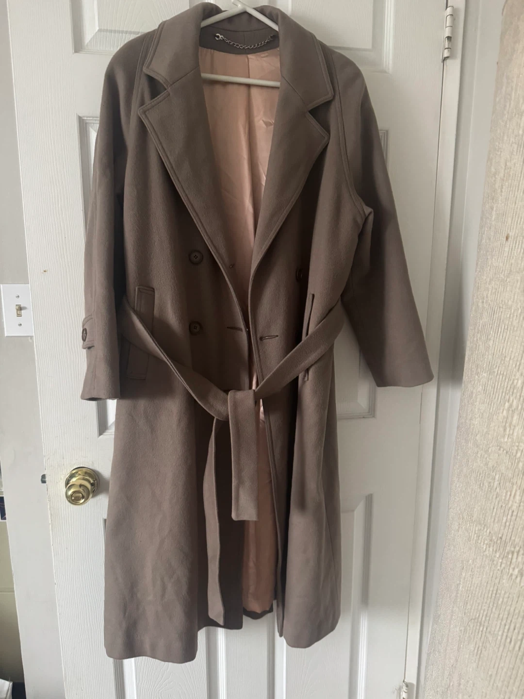 Brown/camel/neutral belted Wool trench coat