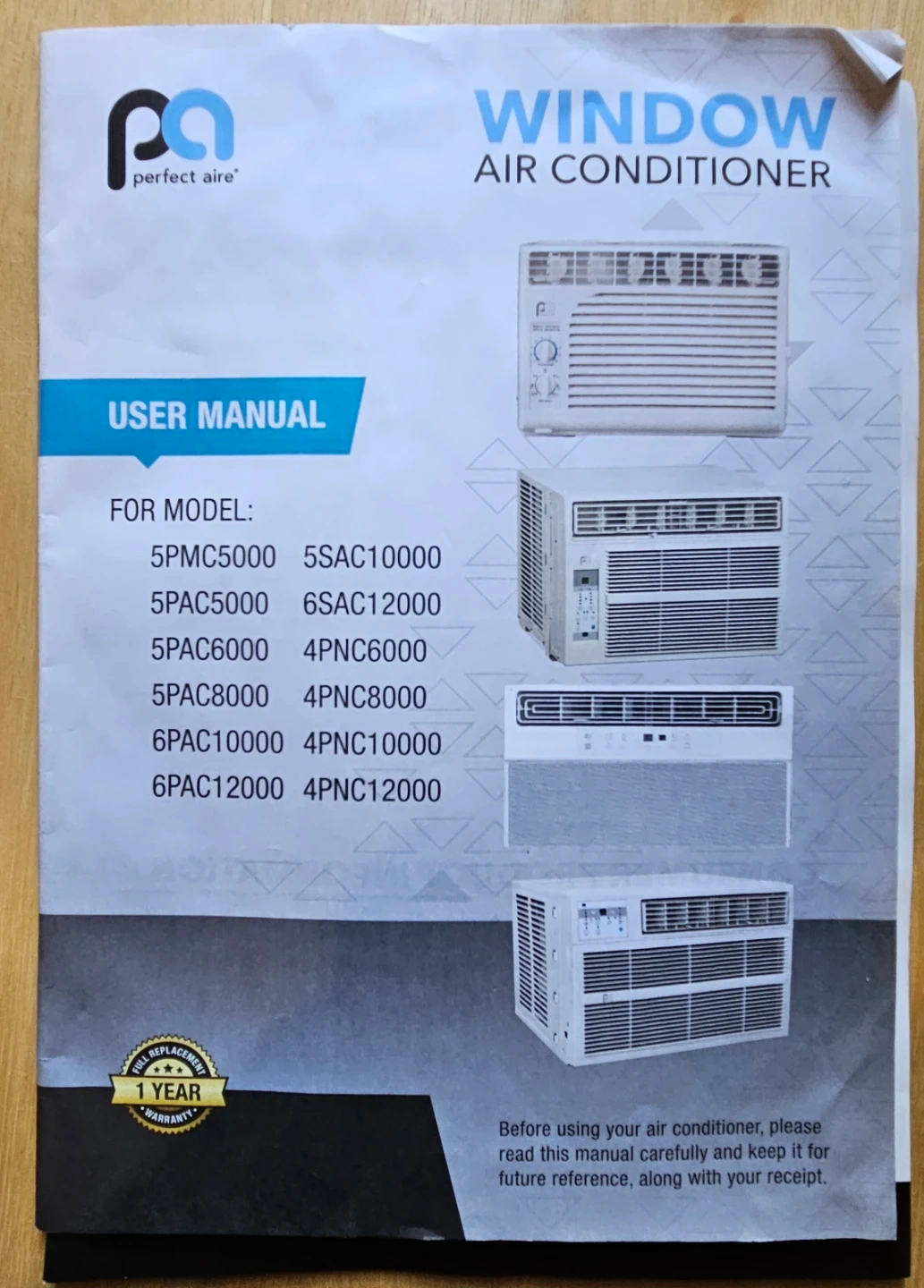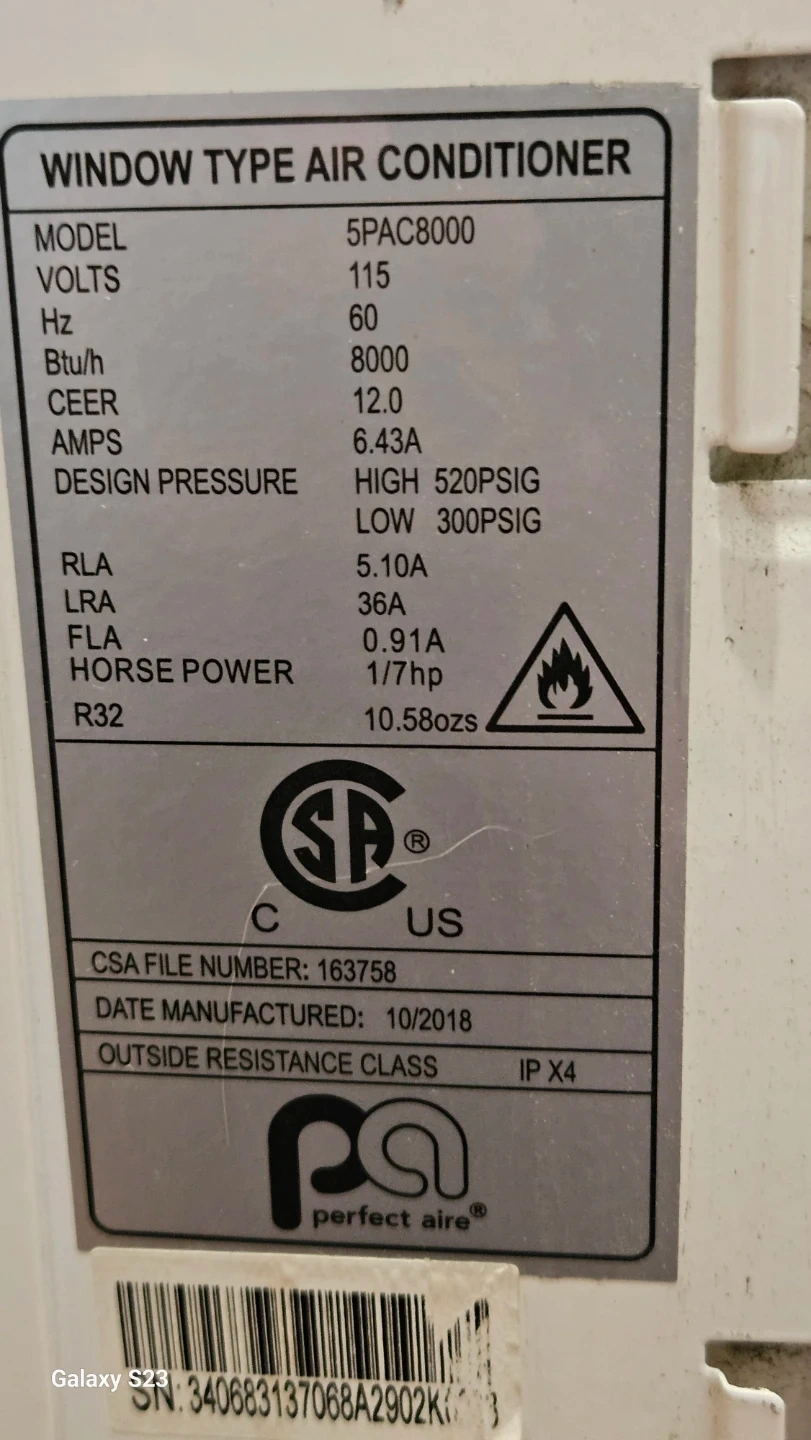 Selling a Perfect Aire window air conditioner, model 5PAC8000. It's in good working condition and ready to keep your space cool! The user manual is included.