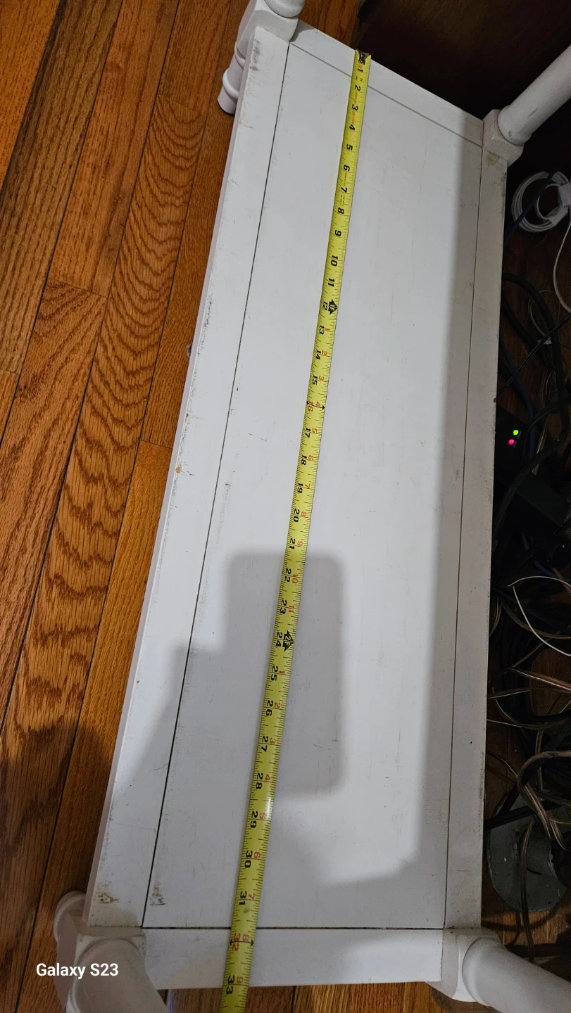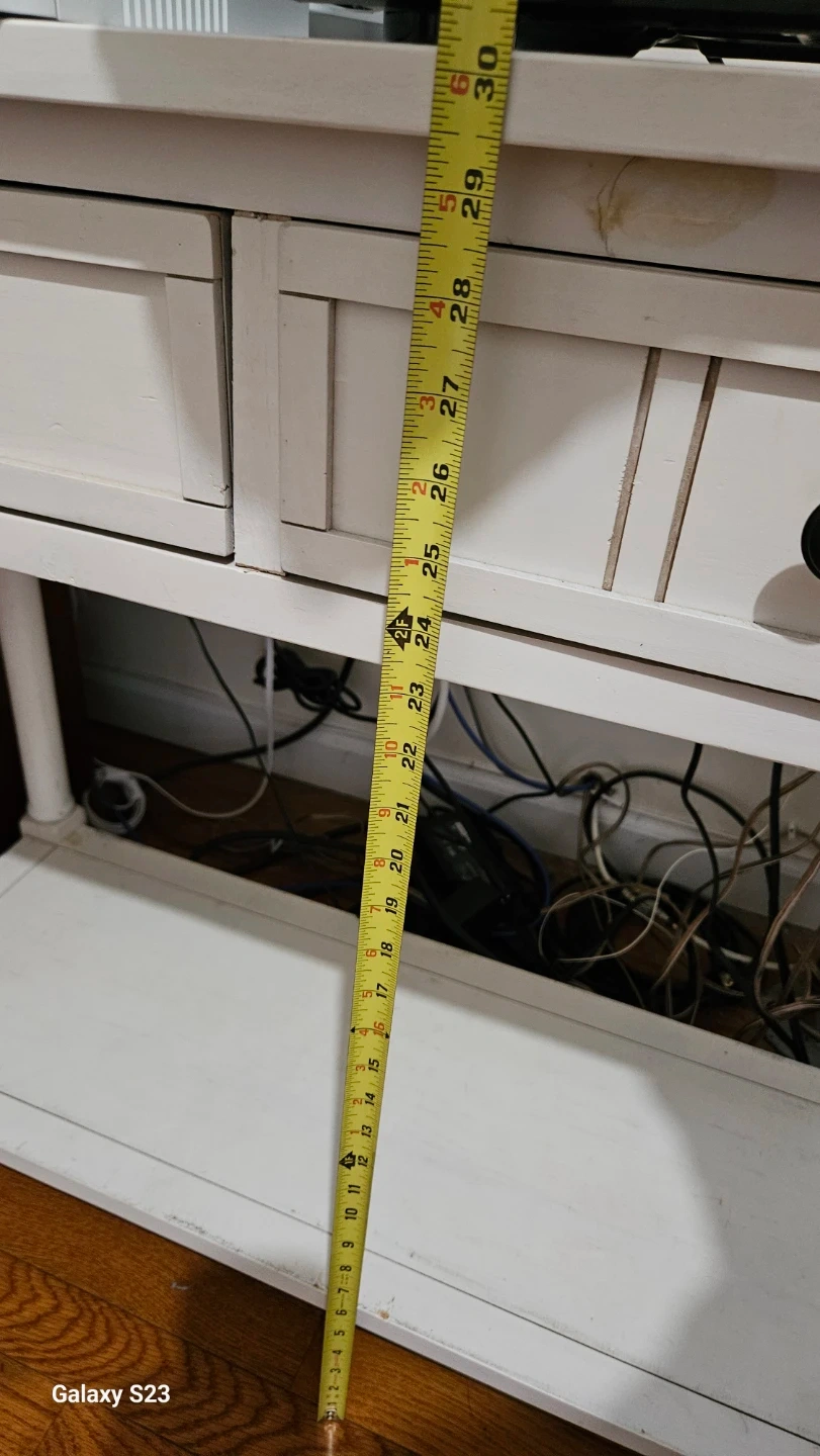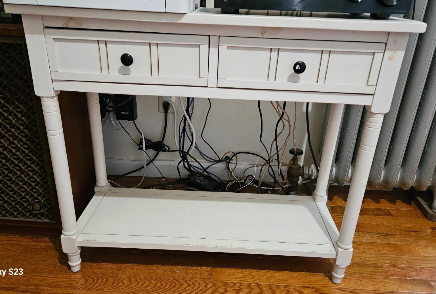 Selling a cute white console table with two drawers! It's a great piece for an entryway or living room.