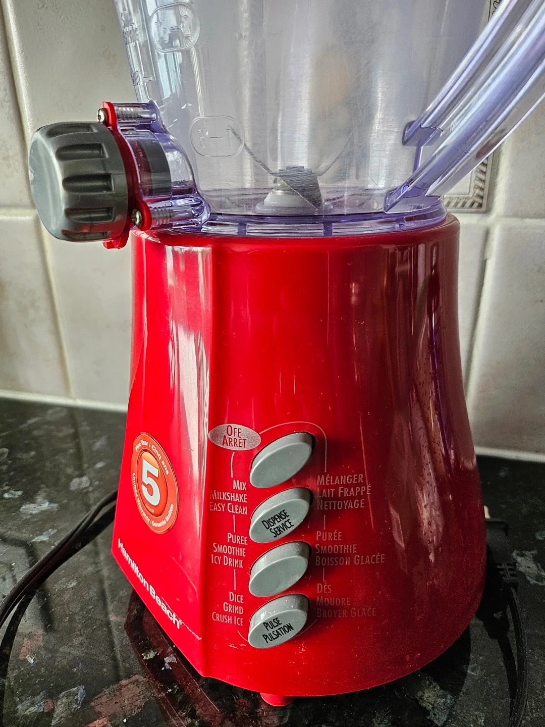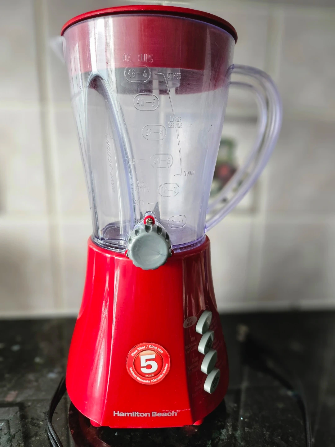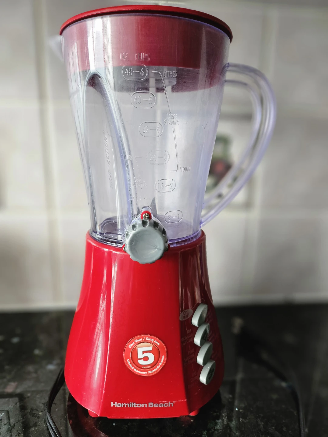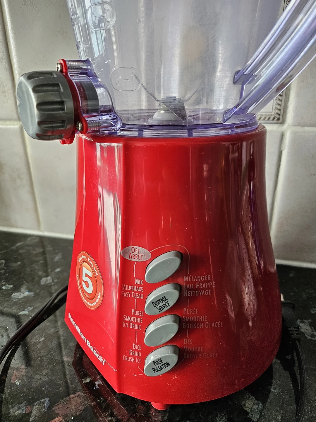 Selling a Hamilton Beach blender in red. It's in good condition and ready to make smoothies and other blended drinks. It has multiple settings for different blending needs.
