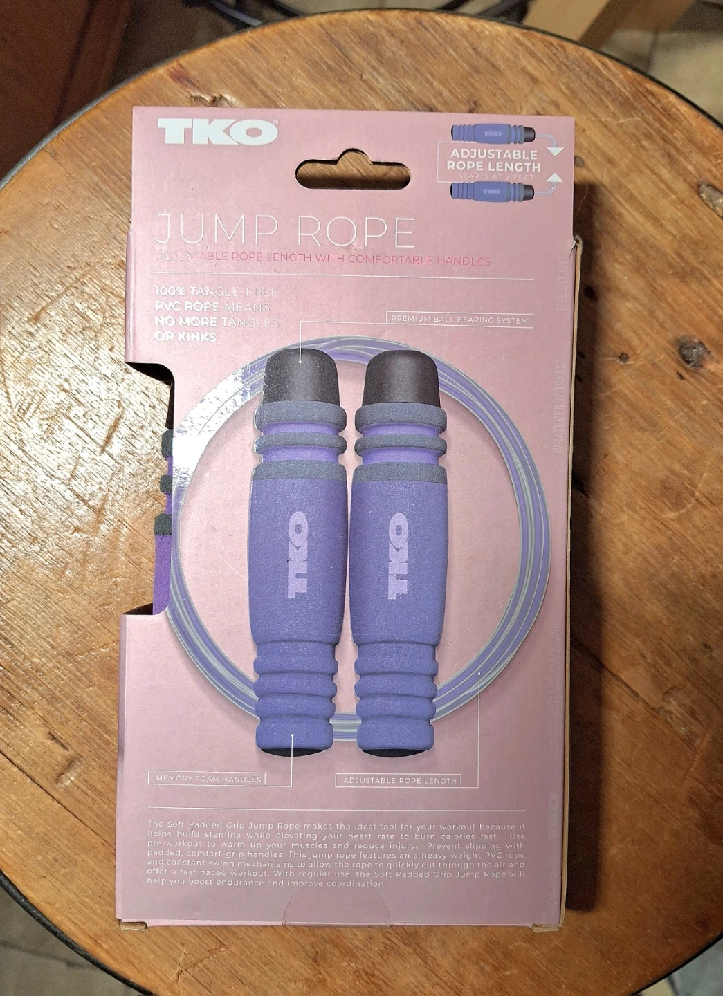 Completely unused but opened (the packaging is a bit scuffed). The handles are on ball bearings so the rotation of the rope is extra smooth.