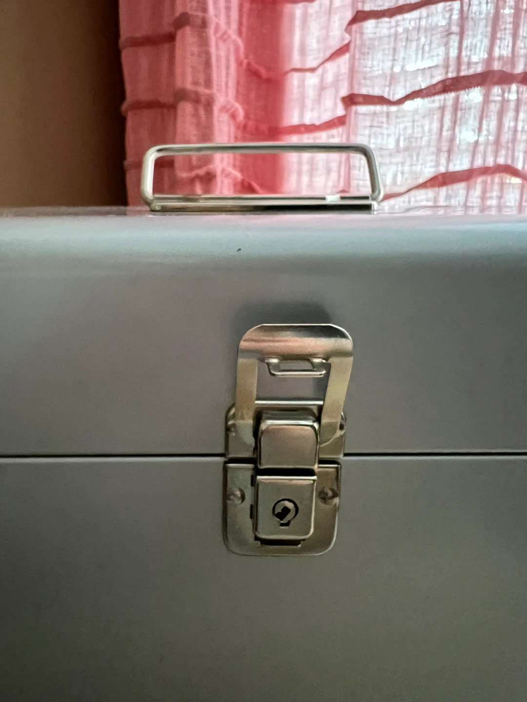 The box features a hinged lid, a single latch with a lock mechanism and a top carrying handle