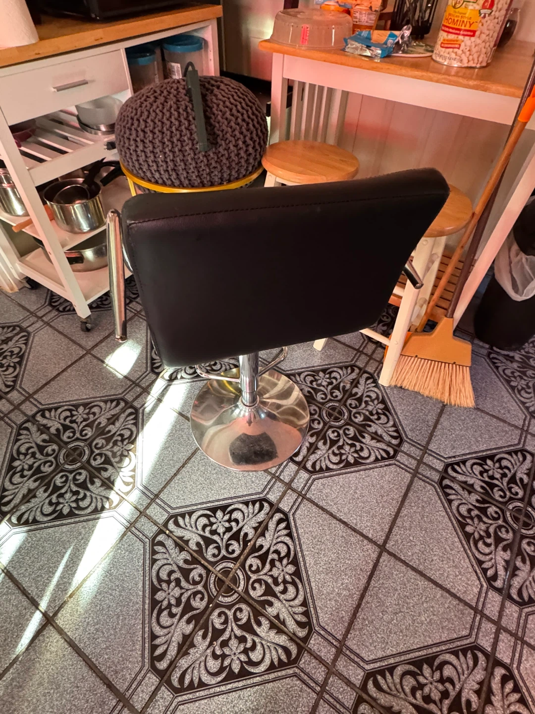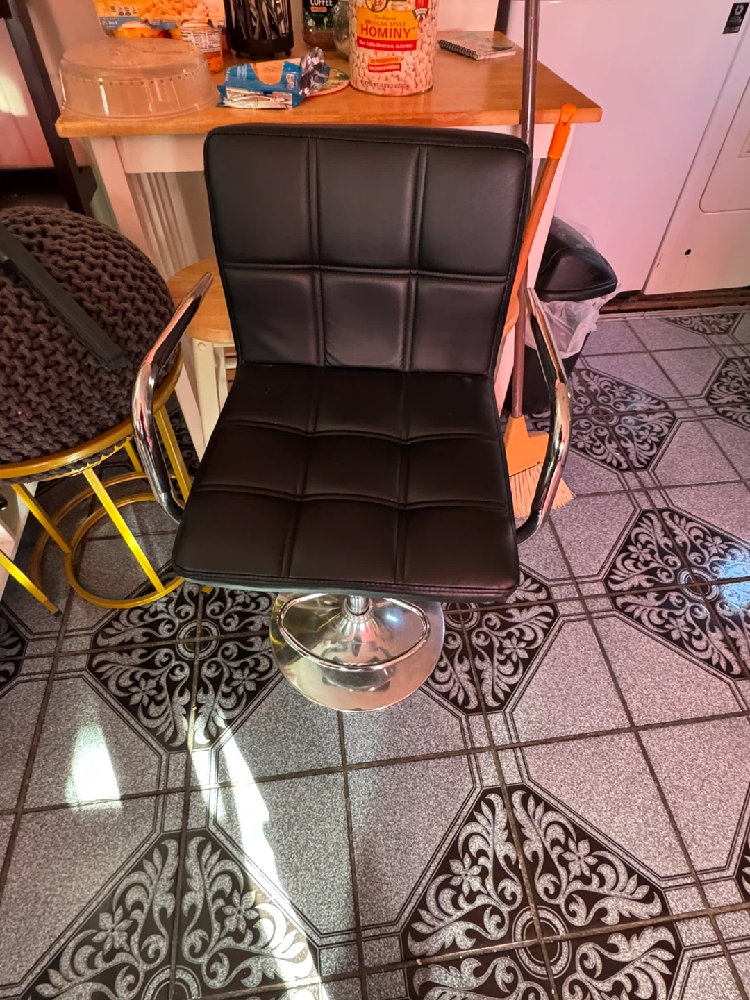 1 / 51 / 5Buy & SellBlack Swivel Bar StoolBlack Swivel Bar Stool$55Selling a black swivel bar stool. The seat is about 20 inches wide and 16 inches deep. The back is about 16 inches tall. Perfect for your kitchen or bar area!ConditionGoodWHERE TO MEETCheck LocationView MapSELLERverifiedBennyMelrose Park20416 reviews0 chats·0 favorites·32 viewsSEND CHAT TO SELLERHi Benny! I’m interested in your listing.Hi Benny! I’m interested in your listing.Get the Karrot app to chatSign In to chat