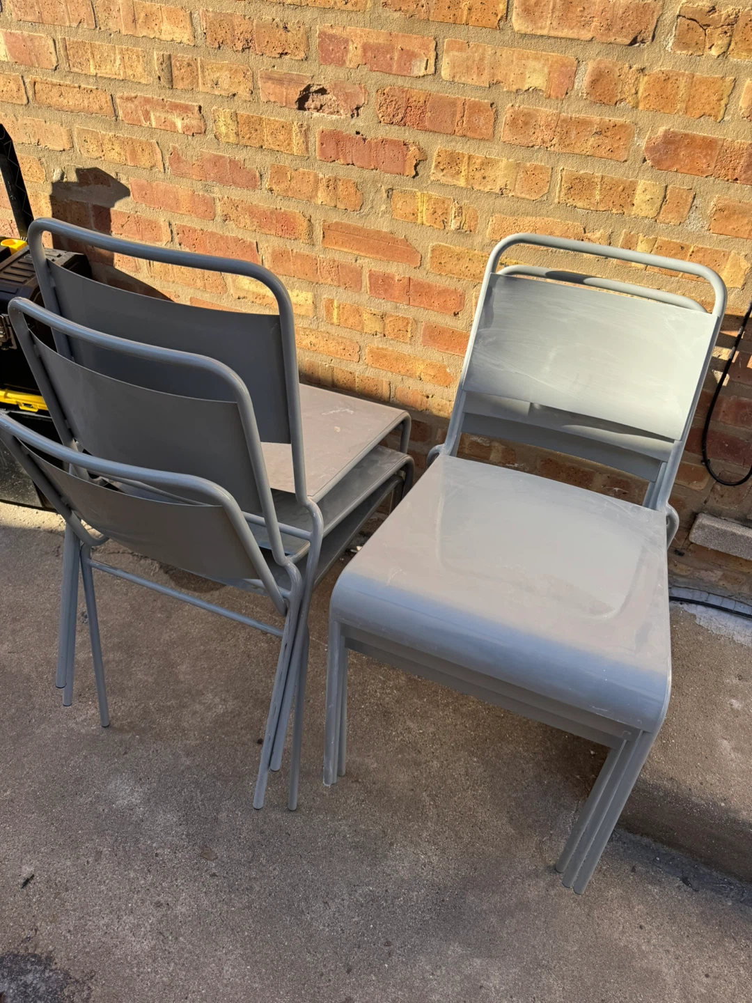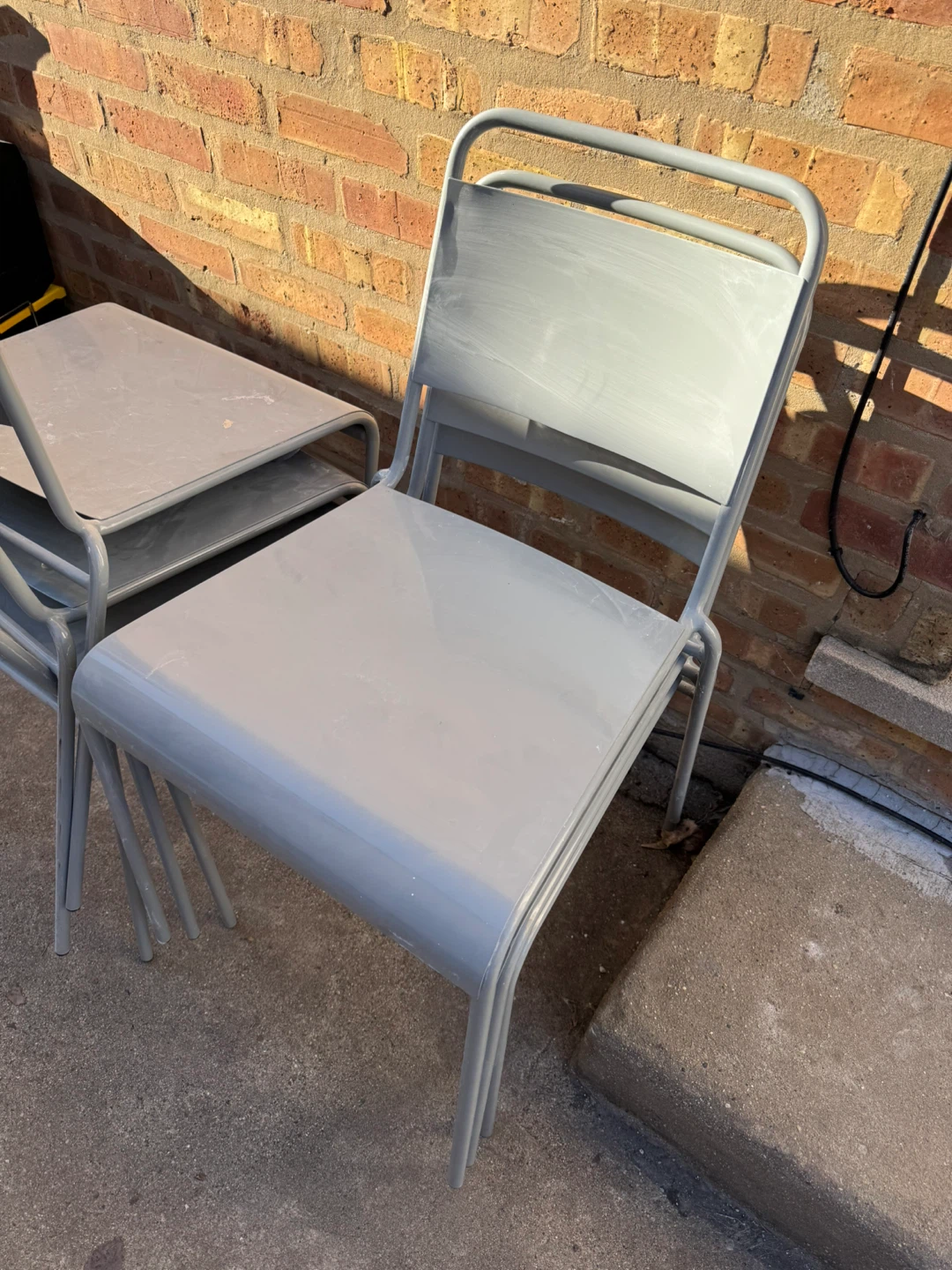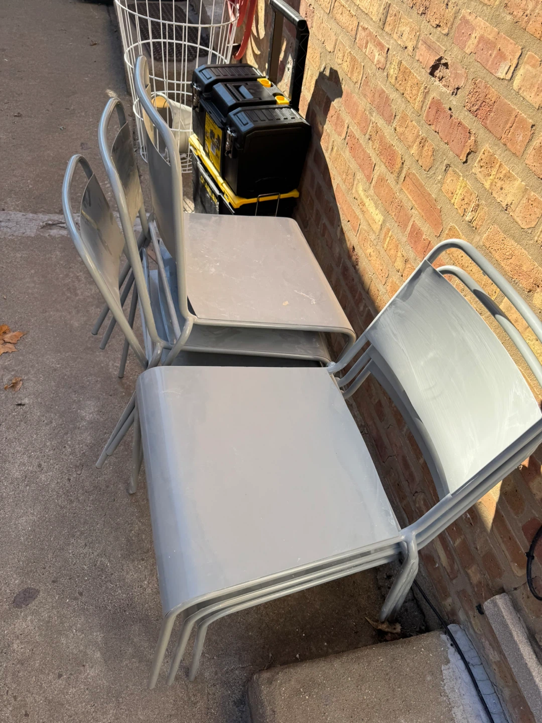 1 / 31 / 3Buy & SellGray Metal Outdoor Chairs - Set of sixGray Metal Outdoor Chairs - Set of six$160Selling a set of six gray metal outdoor chairs. They're stackable for easy storage and in good condition. Perfect for your patio or garden!ConditionLike newWHERE TO MEETCheck LocationView MapSELLERverifiedBennyMelrose Park19615 reviews0 chats·1 favorites·32 viewsSEND CHAT TO SELLERHi Benny! I’m interested in your listing.Hi Benny! I’m interested in your listing.Get the Karrot app to chatSign In to chat