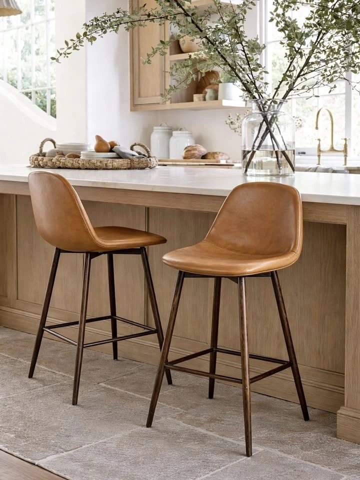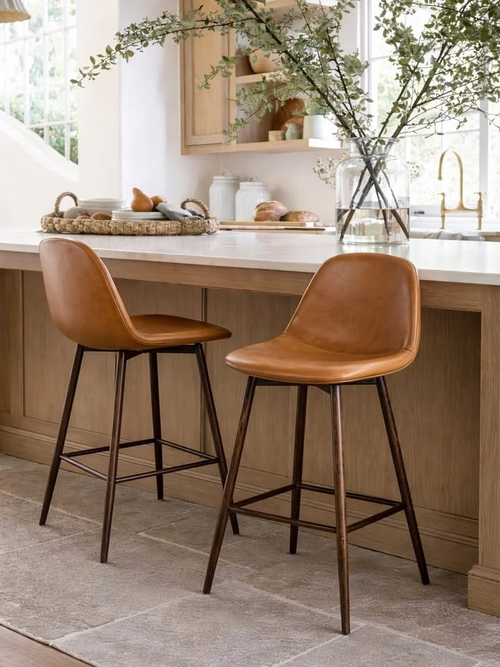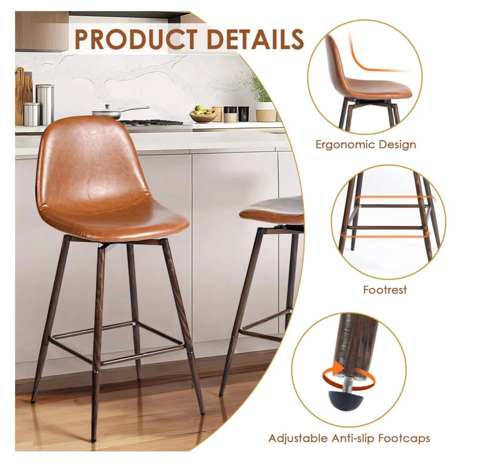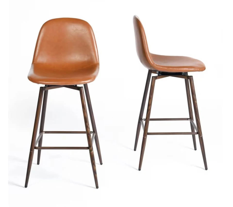 Beautiful set of congac coloured vegan leather counter height swivel stools. Price listed is for the set of 2.