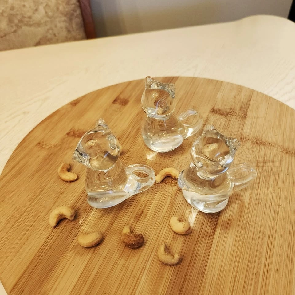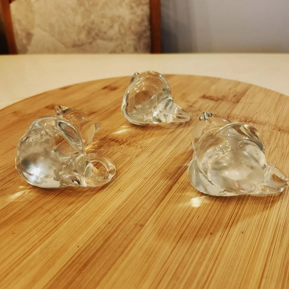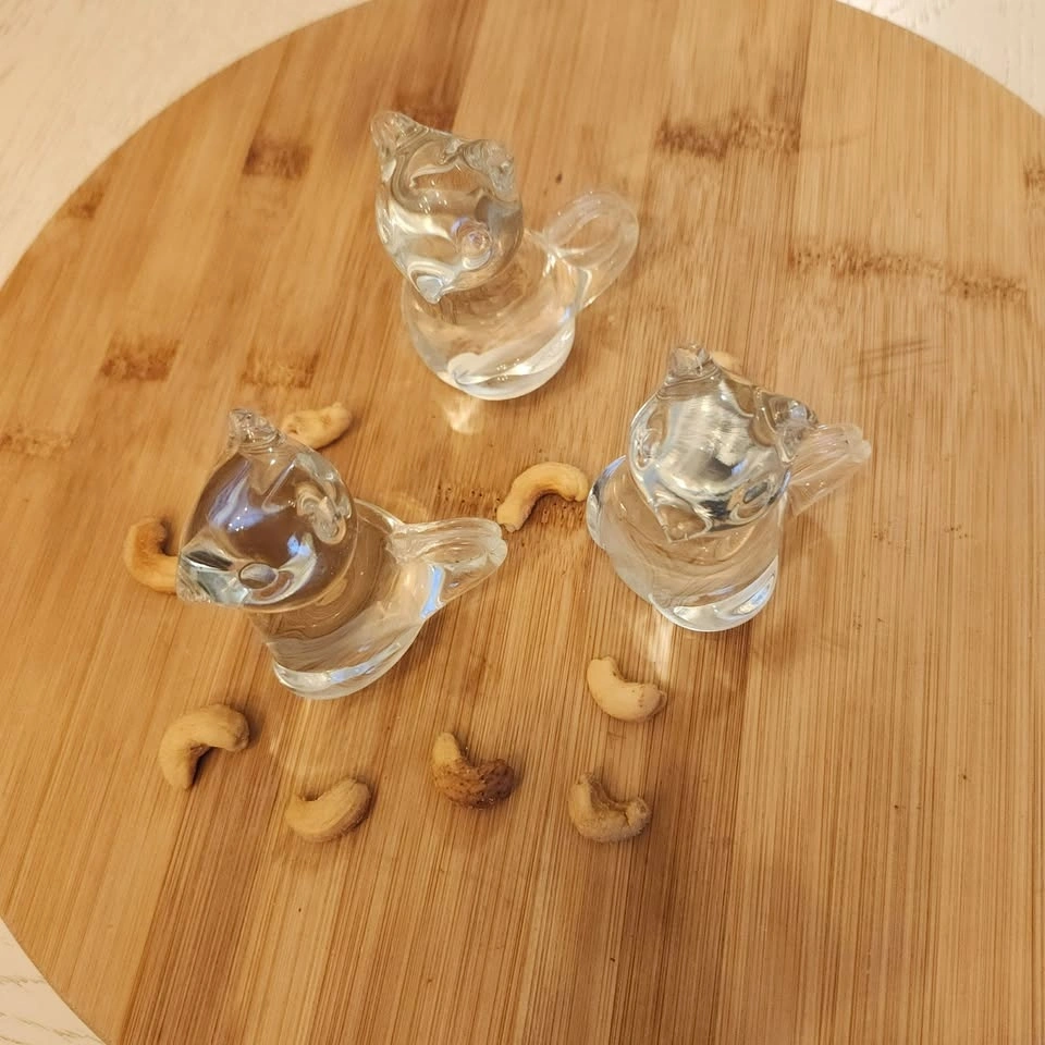 A trio of clear glass squirrels or maybe it's mice! What do you see?