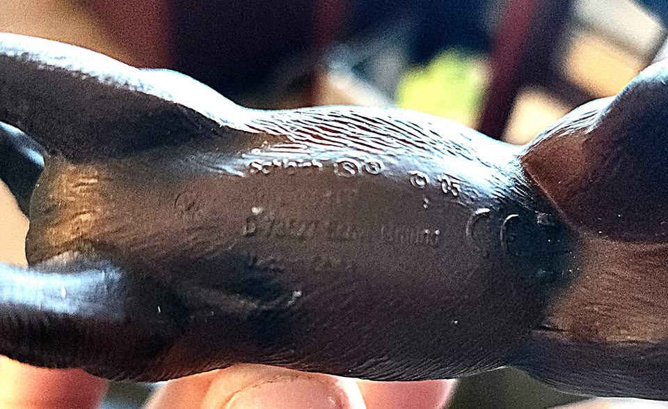 This is a Schleich Frisian Toy Horse, with what looks to be a date stamp on the bottom indicating 2005.