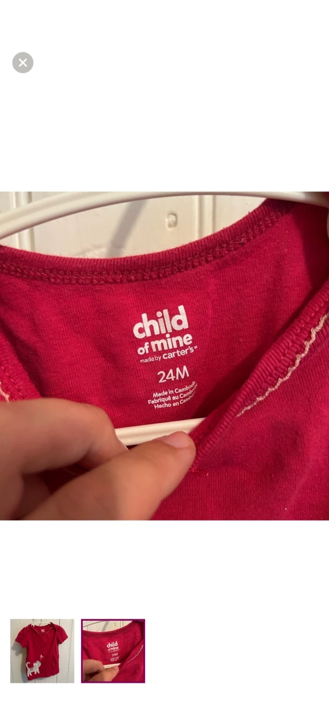Carters brand. Short sleeve shirt. Pink cat design. Size 24m. Brand new condition