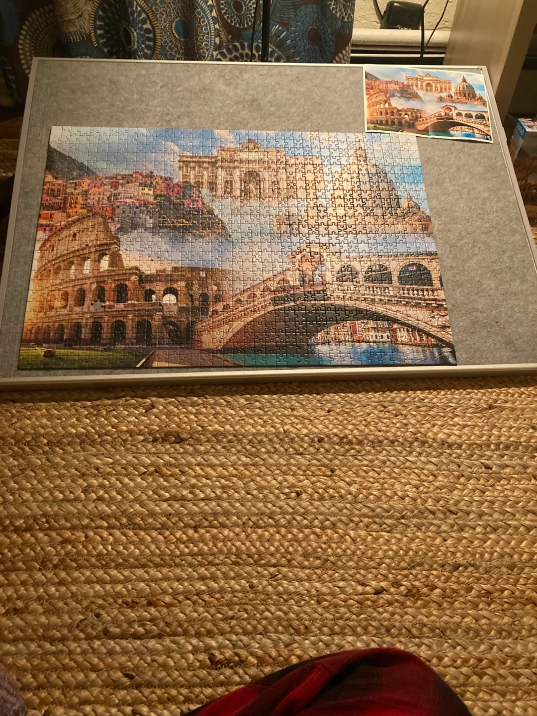 Large felt puzzle board with 4 slide out drawers to categorize and organize pieces as you work