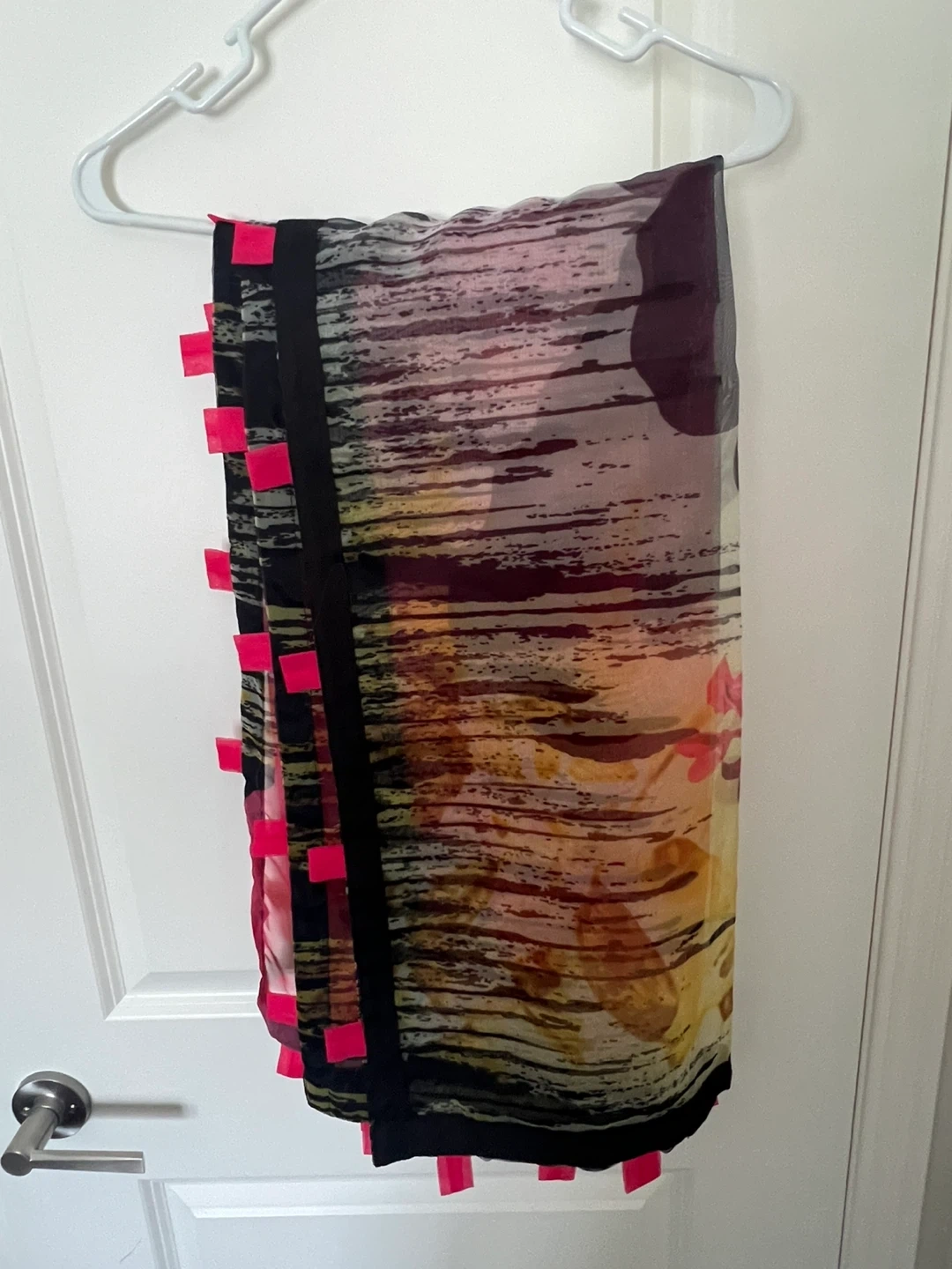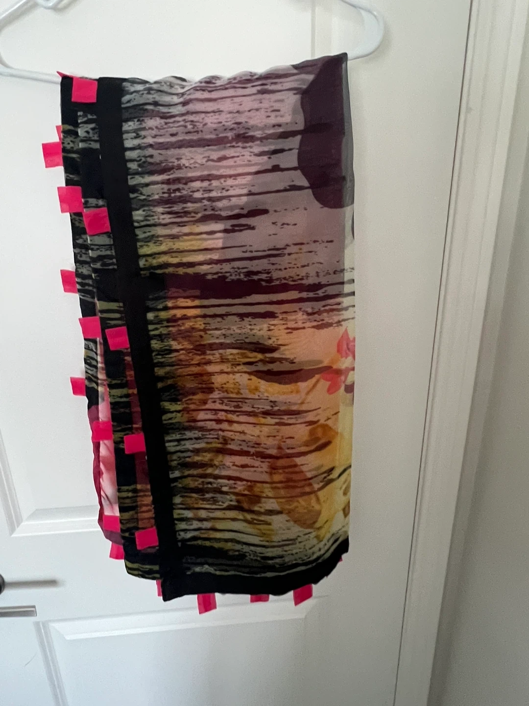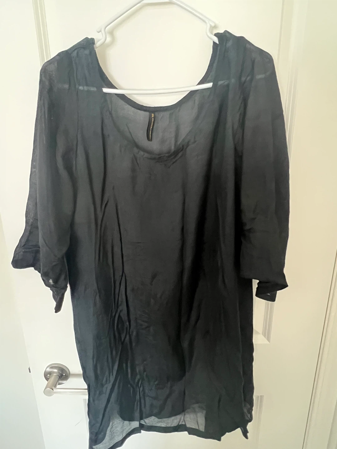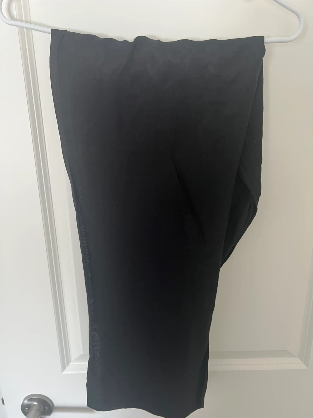 Selling a beautiful black dress and pants set. The dress has a unique floral design with sheer fabric and lace details. The pants are a matching black colour. Both pieces are in new condition and perfect for a special occasion or a night out!