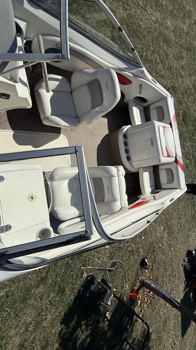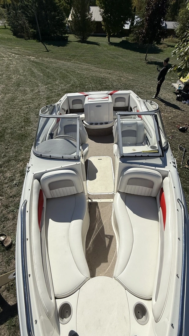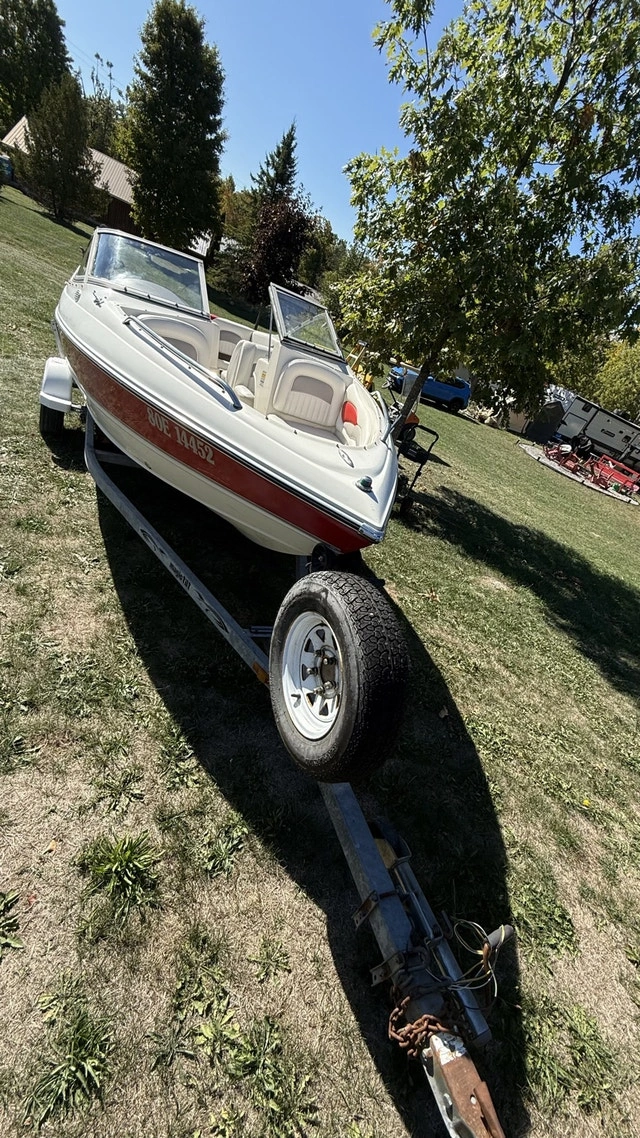 Great boat with great engine 3.0 mercury mercrusier. As you can see boat inside is still very nice, low hours, only 138. Every year maintenance done and stored inside. Comes with bimi roof and cover. Trailer in great shape with good tires. Boat is washed, serviced, and winterized just now, ready for next season. We're looking for a pontoon boat so trades welcome. Feel free to message if you have any questions!