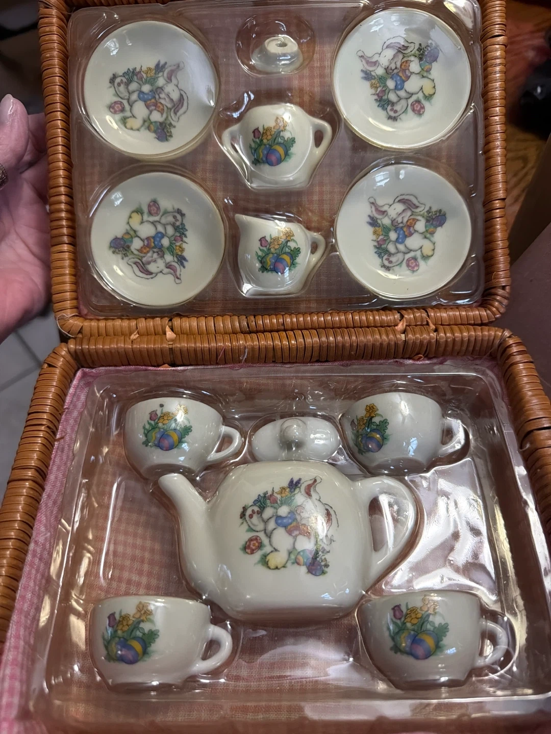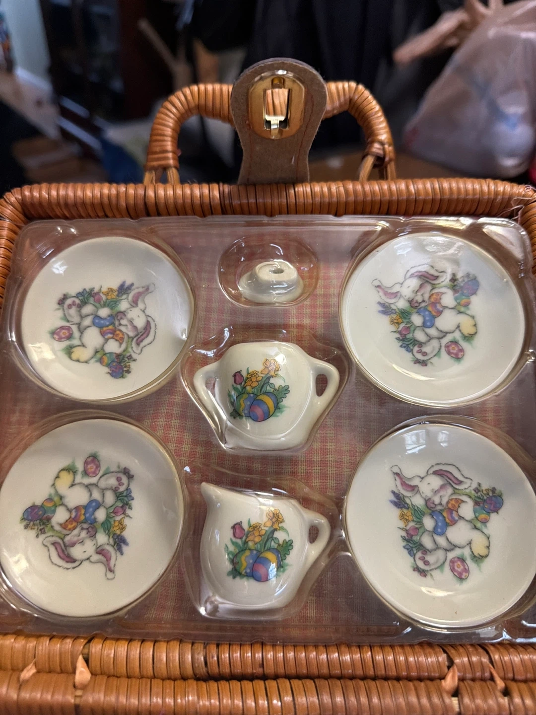 Buy & SellVintage Bunny Tea Set in Wicker BasketVintage Bunny Tea Set in Wicker Basket$15This is a super cute vintage tea set! It features a bunny design and comes in a charming wicker basket. Perfect for a child's tea party or a collector!EstadoNewWHERE TO MEETCheck LocationView MapSELLERverifiedJoMariners Harbor1061 review0 chats·0 favorites·5 viewsSEND CHAT TO SELLERHi Jo! I’m interested in your listing.Hi Jo! I’m interested in your listing.Get the Karrot app to chatSign In to chat