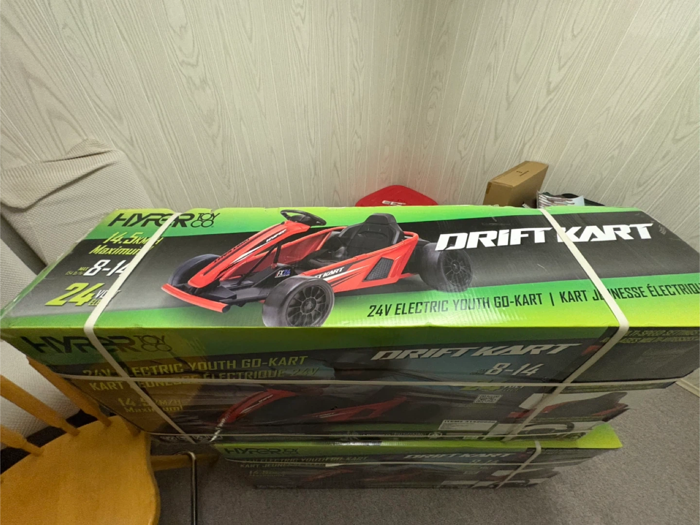 Selling a HYPER TOY Co. Drift Kart, a 24V electric youth go-kart! It's designed for kids aged 8-14. The box mentions a maximum speed of 14.5 km/h. Kart jeunesse électrique is also written on the box, so it's bilingual! Brand new in the package never been opened. Have receipts for them both just looking to get what I paid for. Can’t return them. It’s been too long since purchase purchased at Walmart.