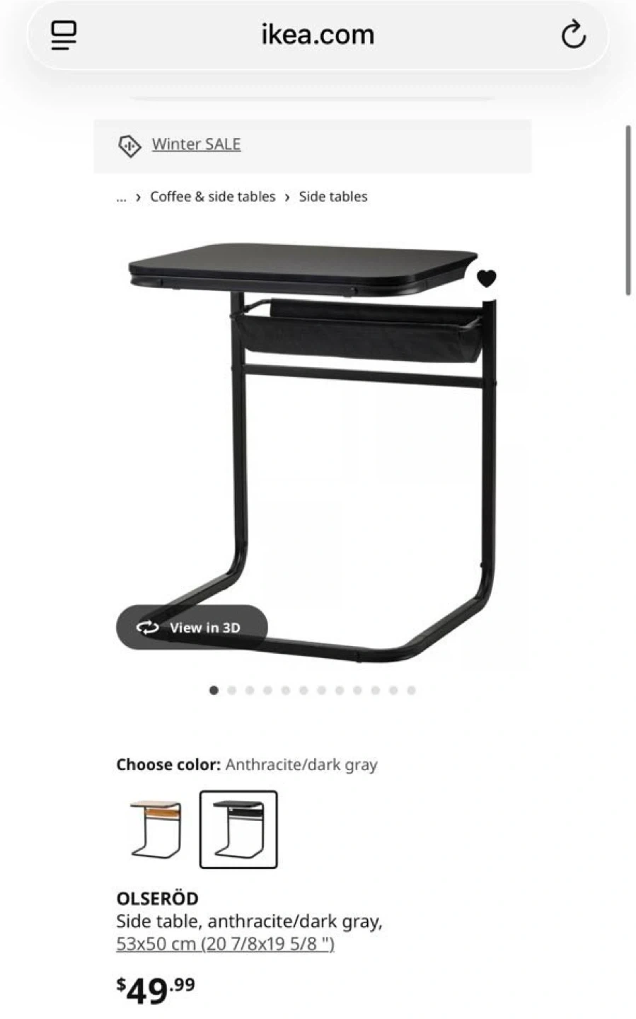 IKEA OLSERÖD side table in anthracite/dark grey.