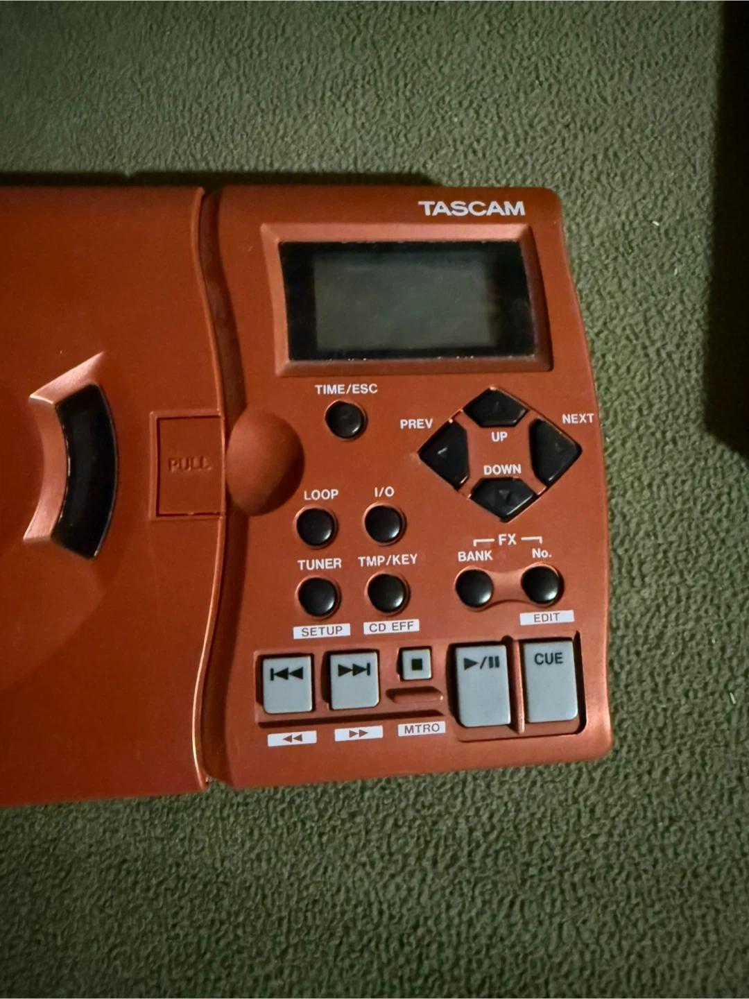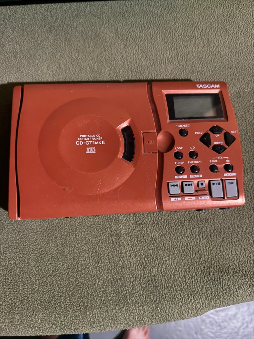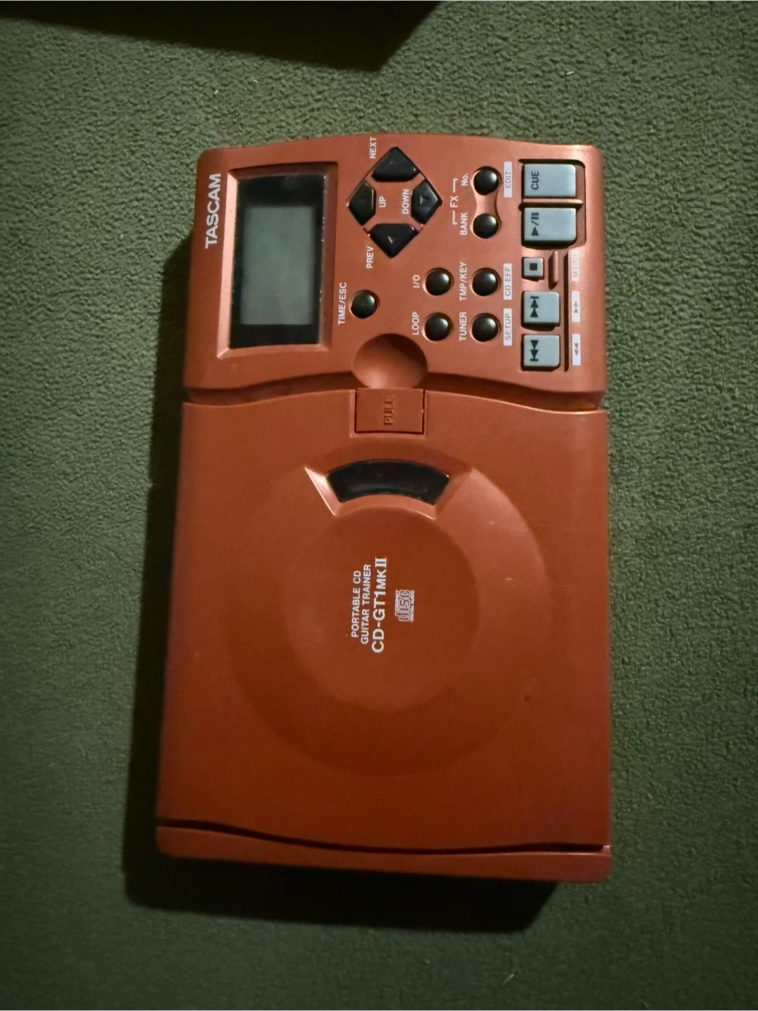 Up for sale is my Tascam CD-GT1mkII portable CD guitar trainer, a fantastic tool for musicians looking to hone their skills! This handy device allows you to slow down tracks without changing the pitch, making it perfect for learning complex guitar solos or transcribing music. While it shows signs of use, it functions perfectly and is ready to assist you in your musical journey.