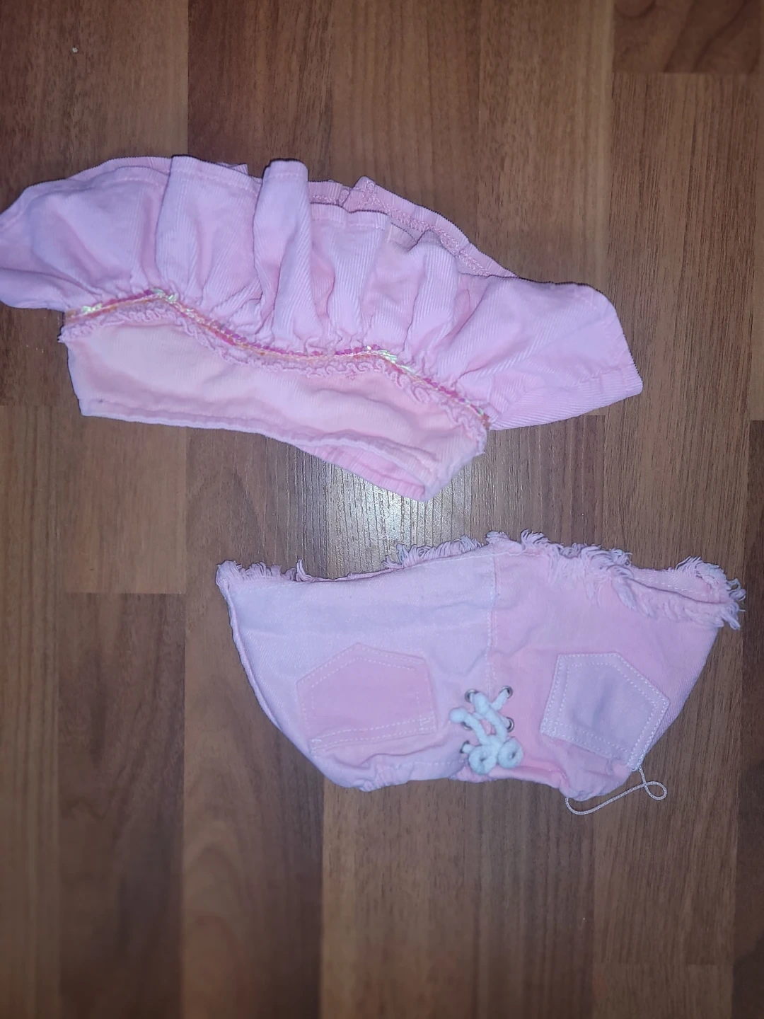 Dress your plush friend in either of these adorable, used Build-a-Bear skirts., Also fits Cabbage Patch dolls. featuring a charming pink denim skirt and sparkle flair skirt! The condition reflects gentle use, but the cuteness factor remains sky-high. Perfect for adding a touch of style to your furry companion's wardrobe.