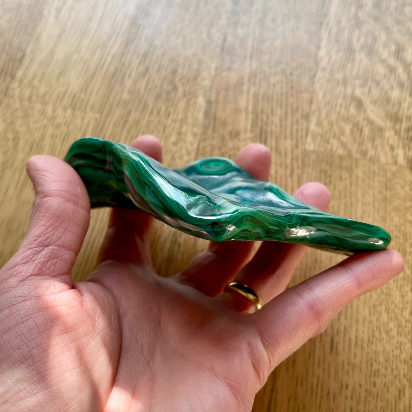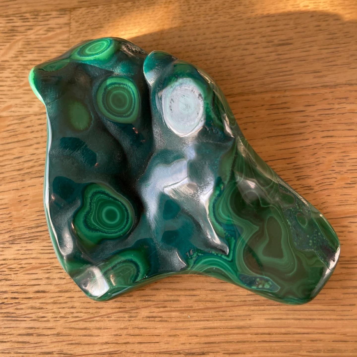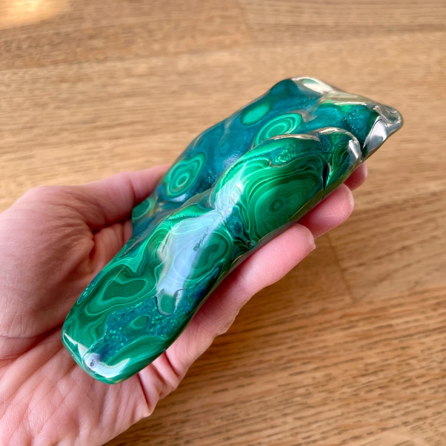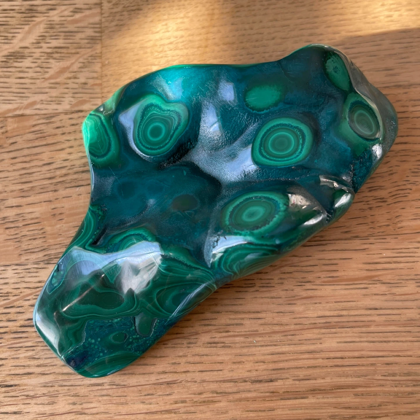 This stunning creation of nature features vibrant deep-green hues and mesmerizing 'bullseye' orbital patterns. Malachite is truly a powerful stone of transformation, promoting change and emotional growth. Additionally, it supports connection in relationships and is associated with the heart chakra.