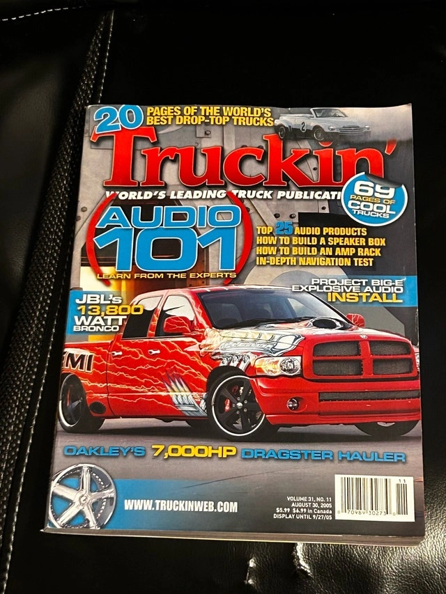 Take a trip back to the golden age of custom trucks with this issue of Truckin' Magazine! Featuring slammed suspensions, wild paint jobs, and enough chrome to blind a trucker, this magazine is a time capsule of early 2000s truck culture. This magazine is in good condition, with some minor shelf wear. Perfect for any truck enthusiast or collector! If the ad is up, it's still available. Don't miss out on this piece of automotive history! Cash only. Pickup in East York