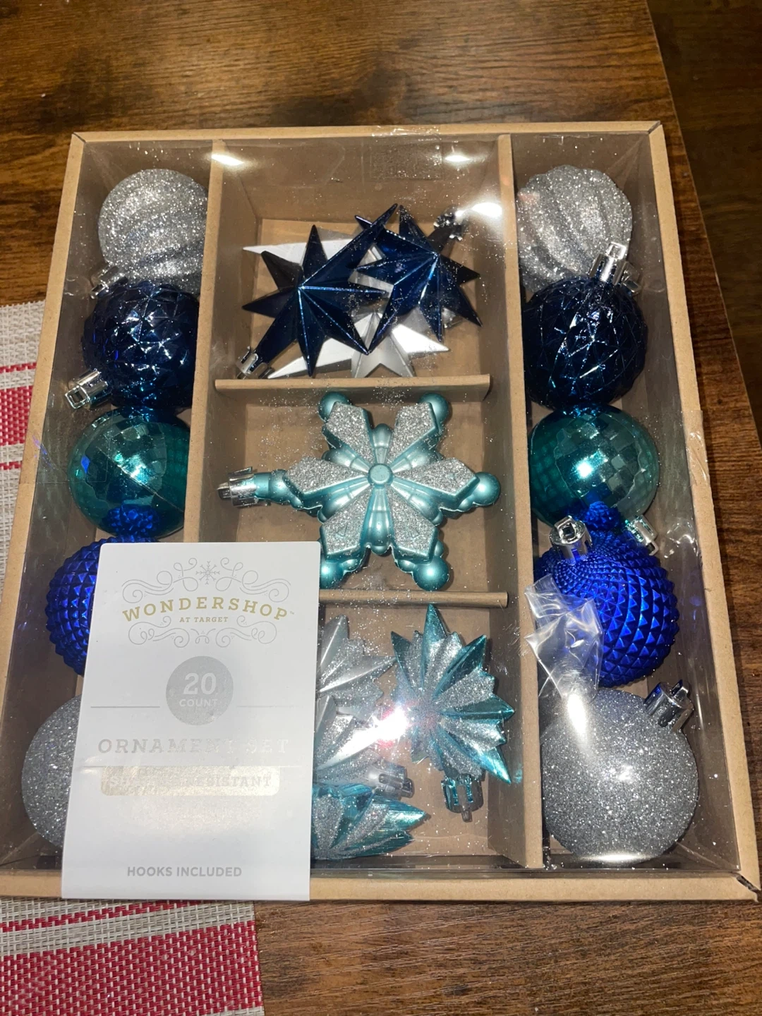 I'm selling a cute little Christmas tree with a set of Wondershop ornaments! The set includes 20 ornaments in a variety of shapes and colors, perfect for adding some sparkle to your holiday decor. The tree on the cover picture is just an example of the tree in the unopened box. It’s a two piece set and bendable. It has fake snow.