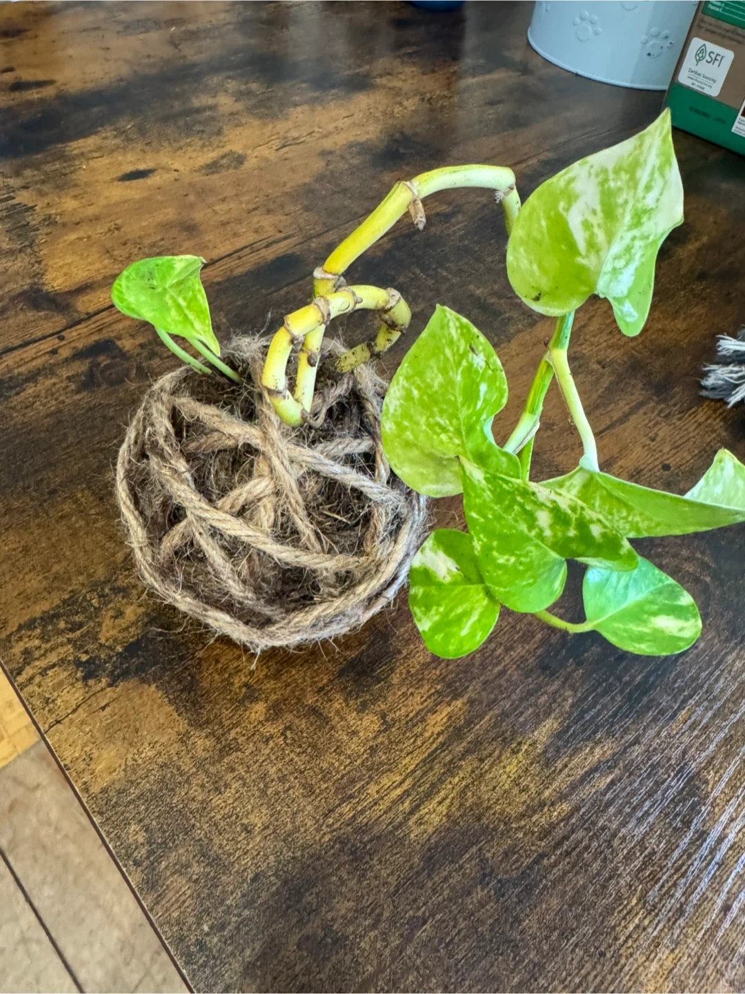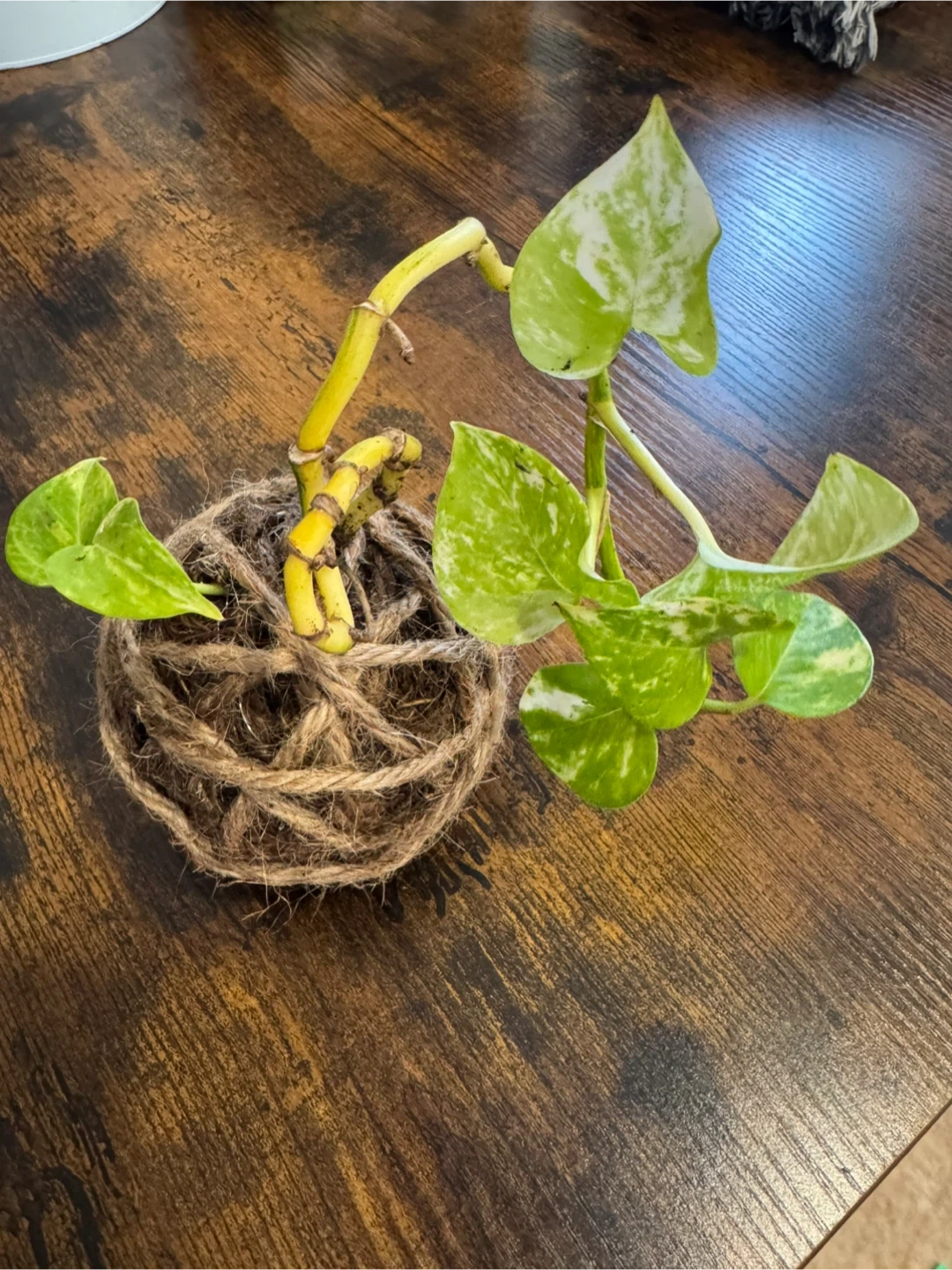 I'm selling a beautiful pothos plant in a kokedama style! It's a unique way to display this easy-to-care-for houseplant. The plant is healthy and vibrant, ready to add a touch of green to your space