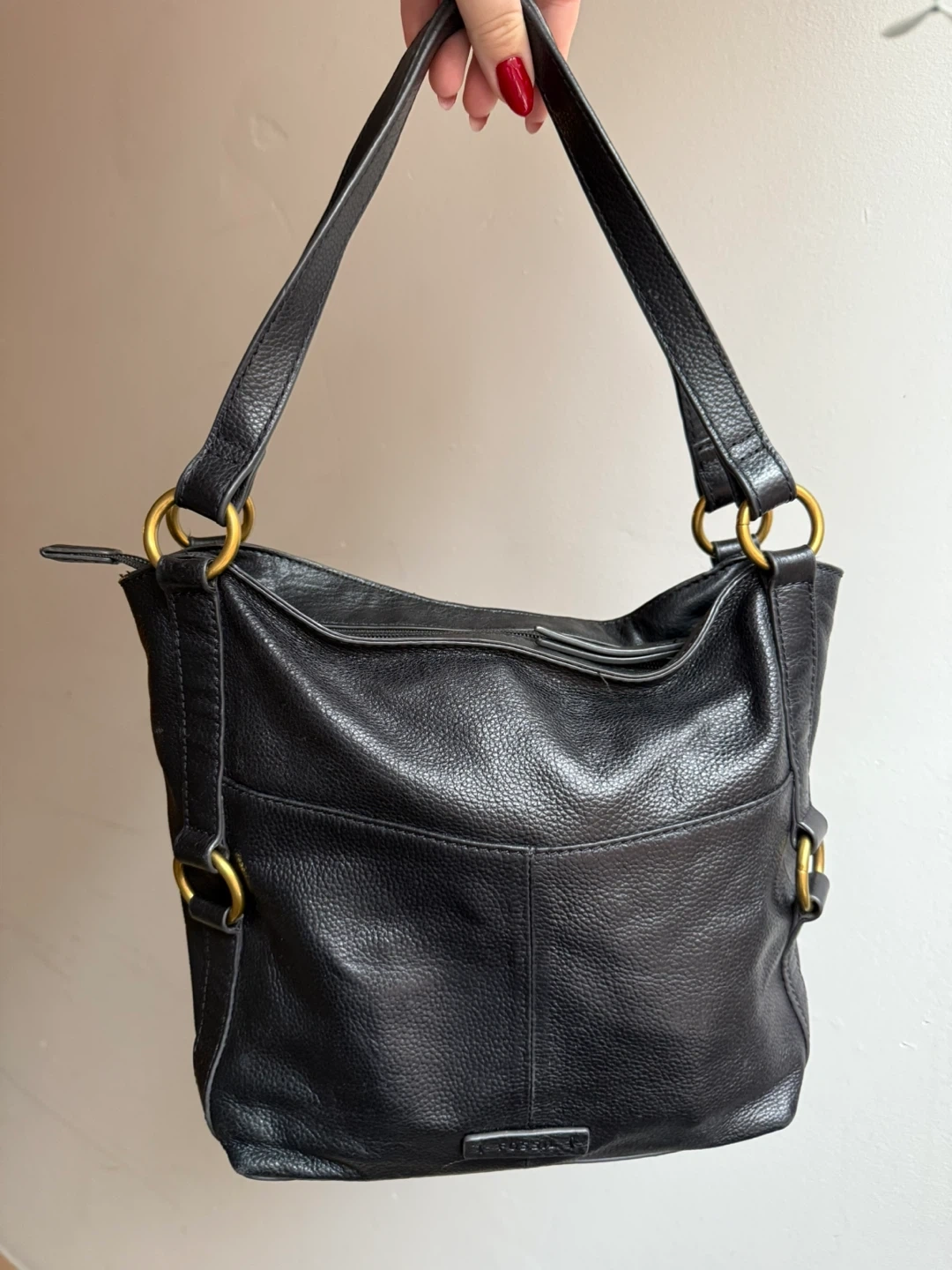 Style: Fossil Sam Shopper Black Leather Shoulder/Crossbody Bag