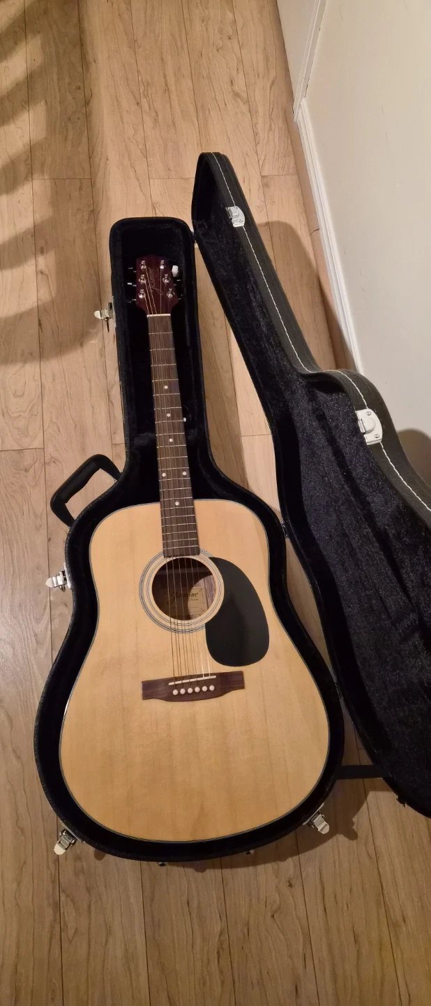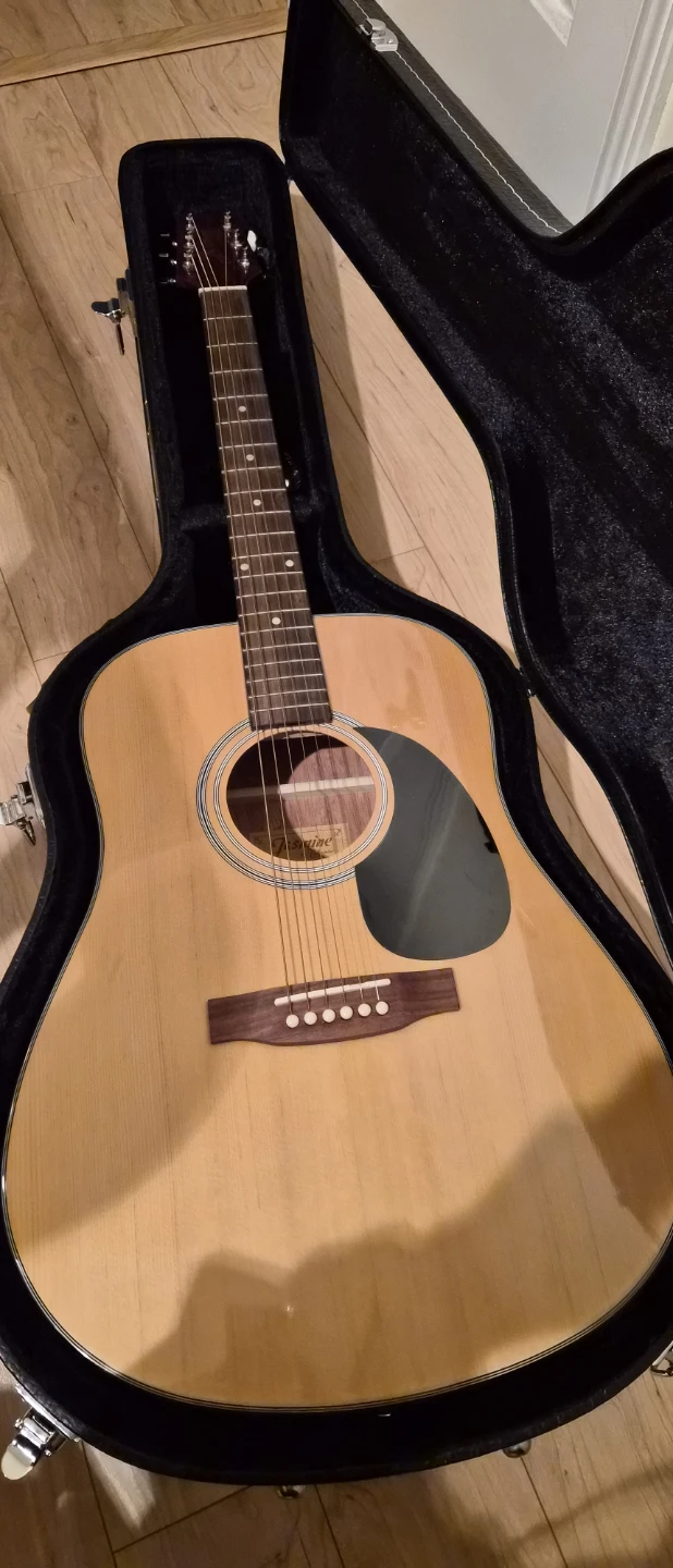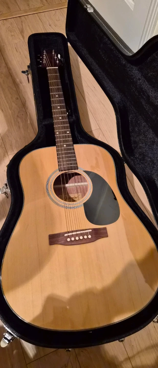 Selling a Jasmine by Takamine acoustic guitar! It comes with a case so it's easy to carry around. It's in great condition and ready for a new musician