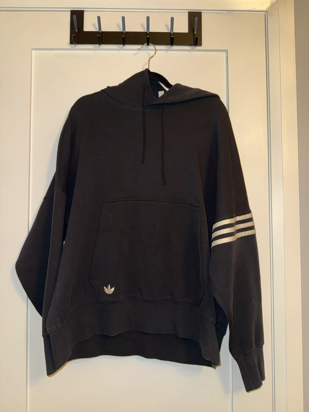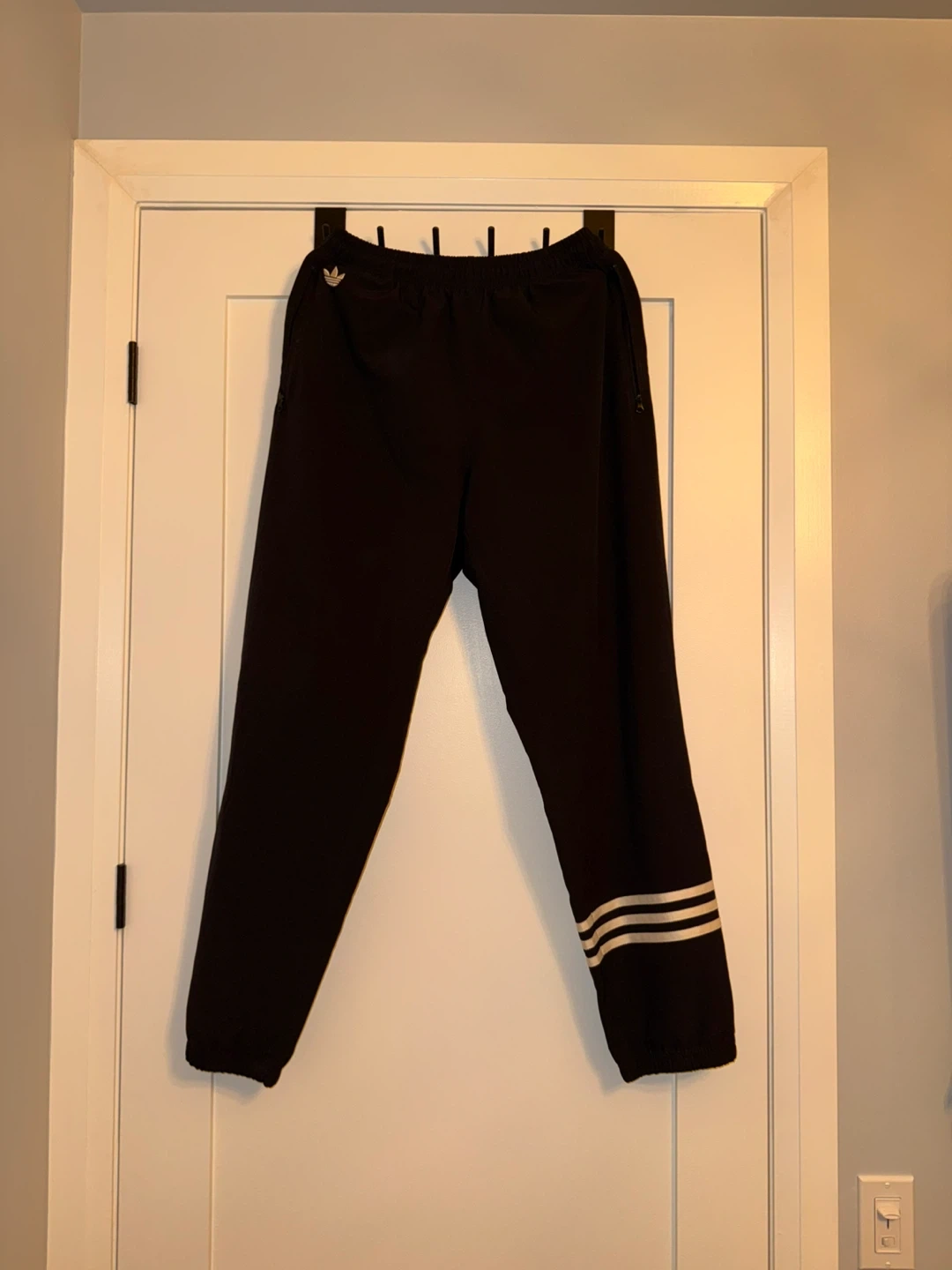 Selling a matching Adidas track pants and hoodie set, both in size large. The set is black with the classic three stripes design. Great for casual wear or workouts!