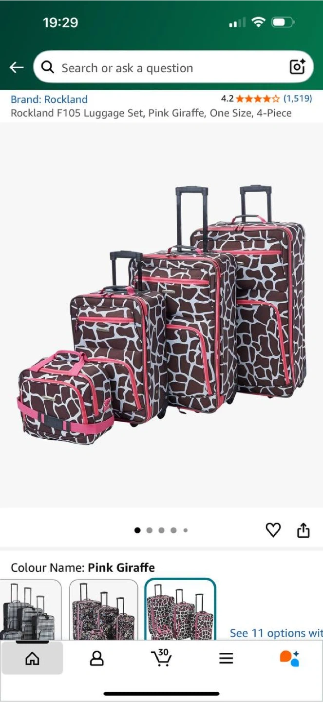 π§³ Rockland F105 Luggage Set β Pink Giraffe (4-Piece)
