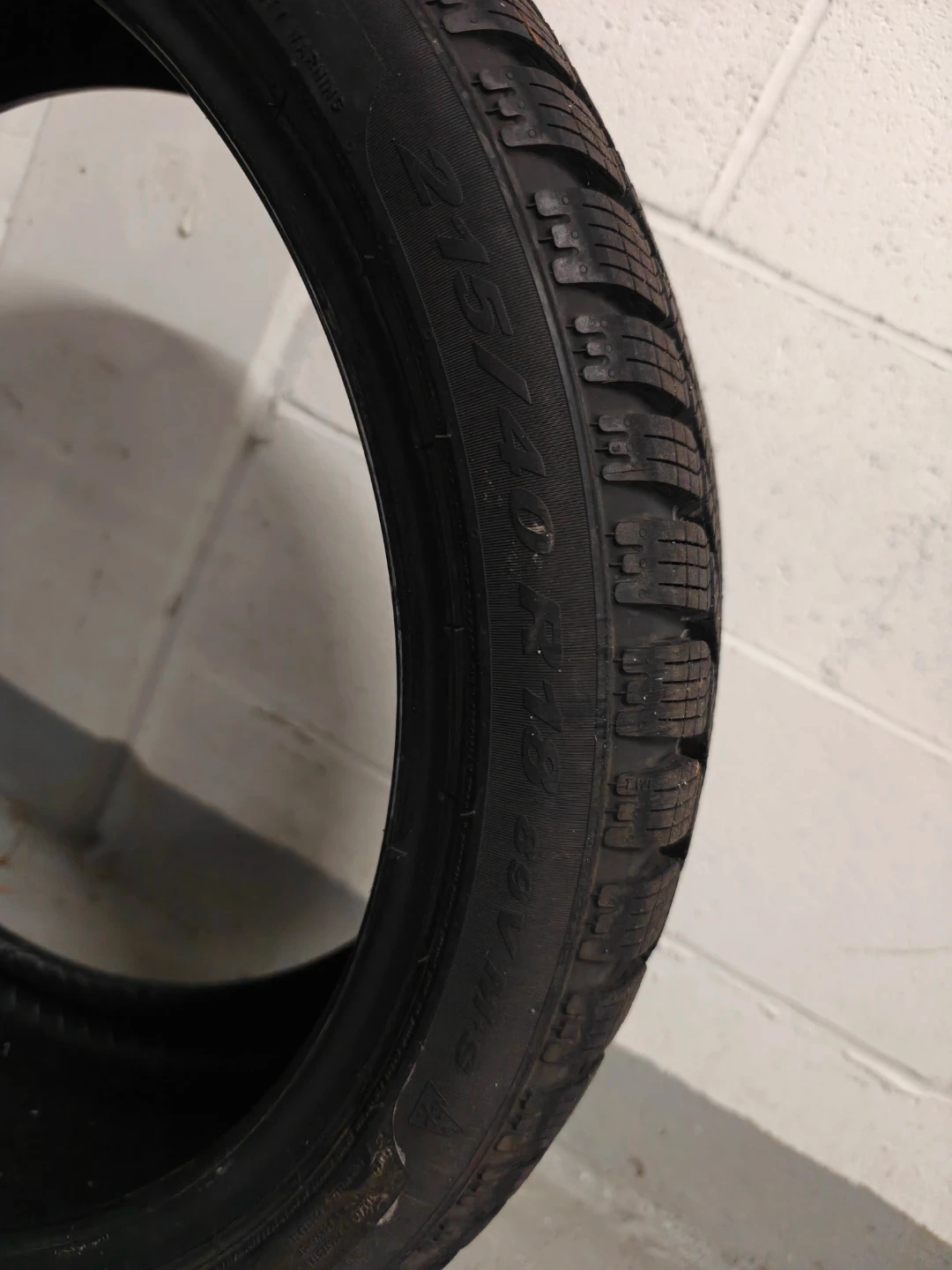 Selling a set of 4 Pirelli Winter 2 Cinturato tire, size 215/40R18. It is good as new (10/32 thread depth) and ready for the winter season!
