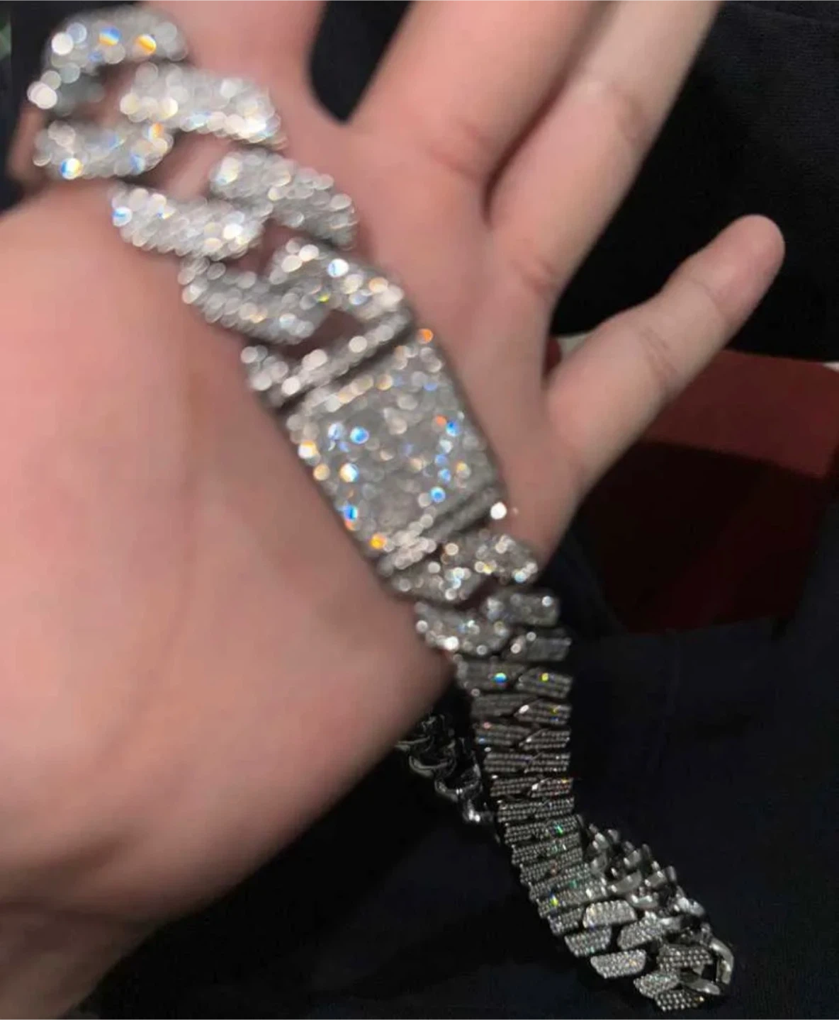 15mm VVS moissanite Cuban link chain — insane shine and passes diamond tester.