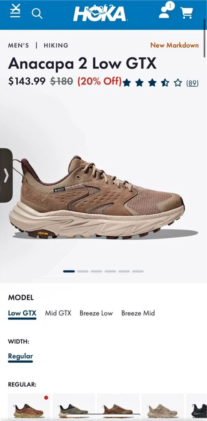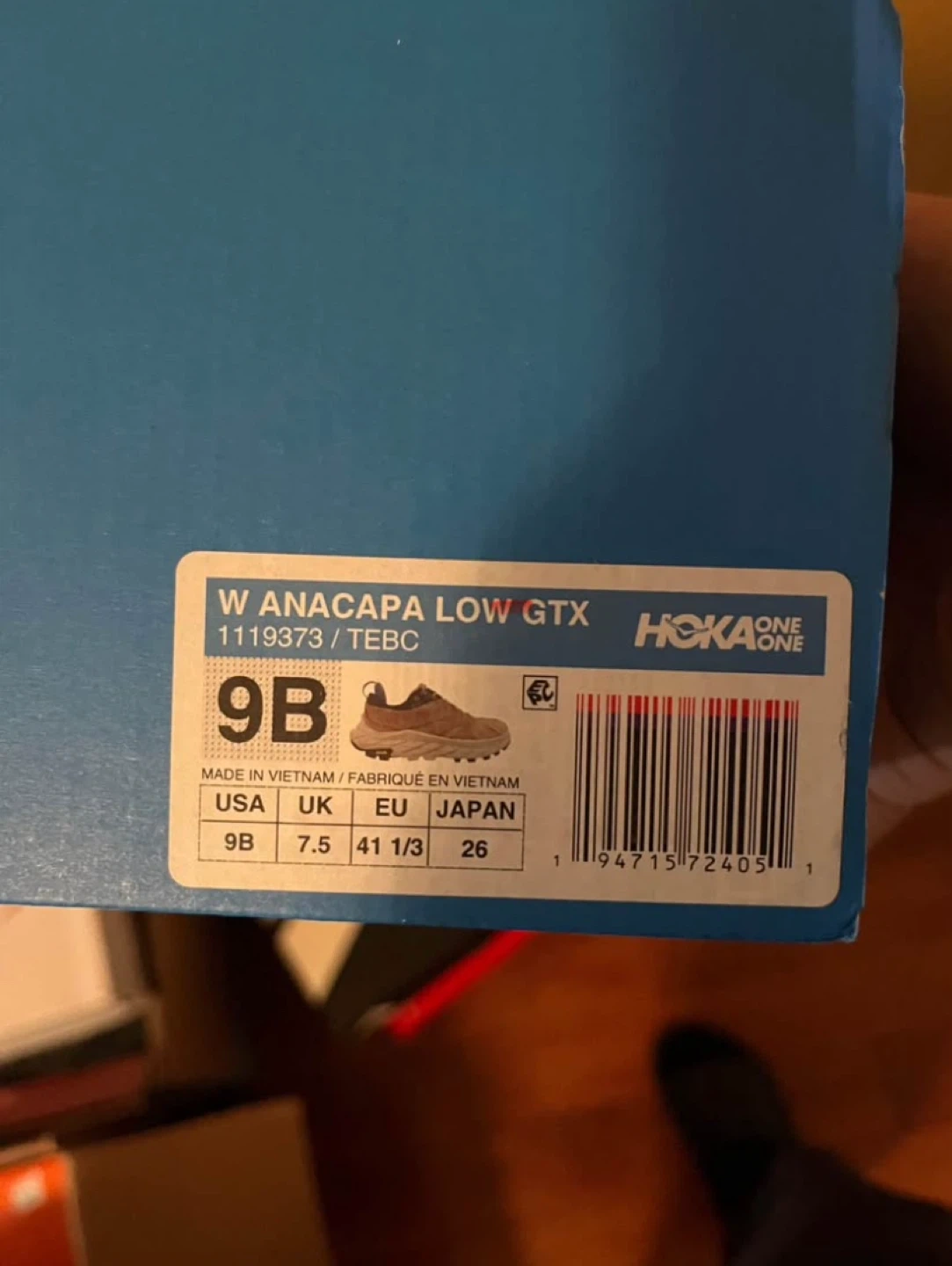 Selling a pair of Hoka Anacapa 2 Low GTX hiking shoes for women in size 9B. These are great for hiking and outdoor activities. Only 5 miles on it. They are in excellent condition and come with the original box.