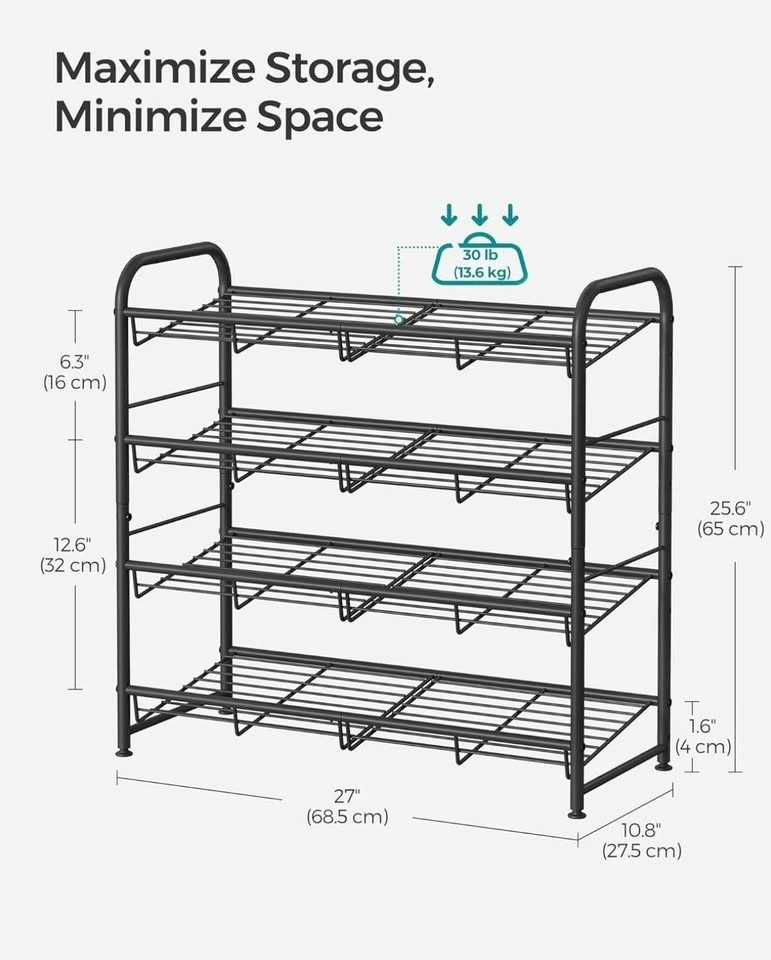 SONGMICS Stackable Shoe Rack – 4-Tier | New