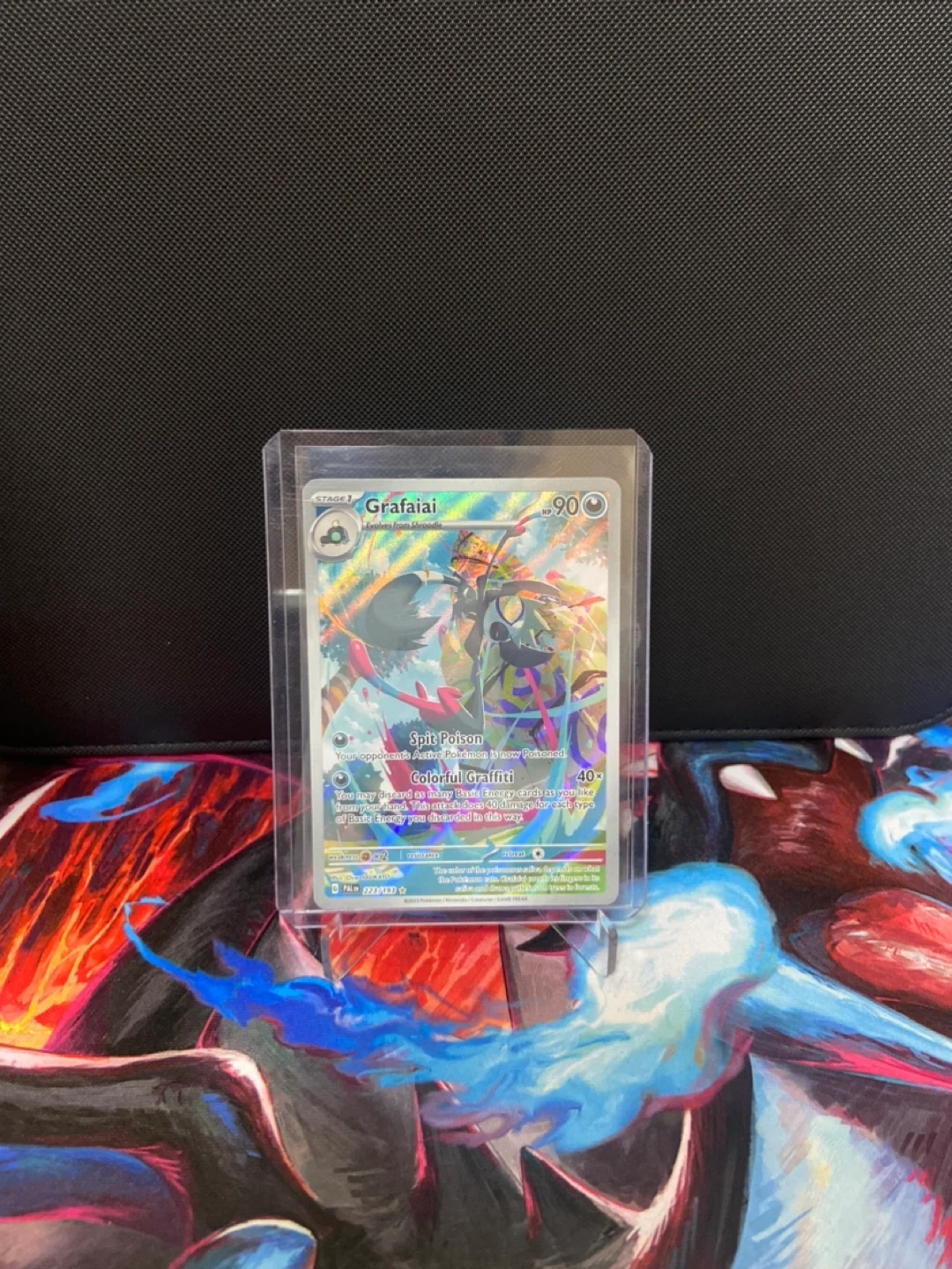 Selling a Grafiaiai Pokemon card in great condition! It's a stage 1 card with 90 HP. The card features the Spit Poison and Colorful Graffiti attacks. Feel free to message me if you're interested!