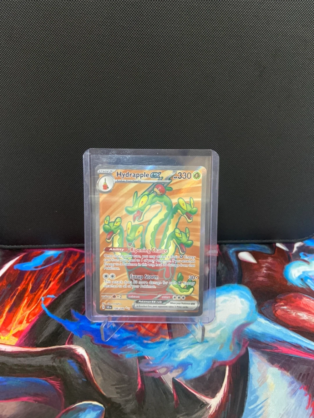 Selling a Hydrapple GX Pokemon card! It's in great condition and ready for a new collection. This card features the Ripening Charge ability and Syrup Storm attack. A great addition for any Pokemon fan