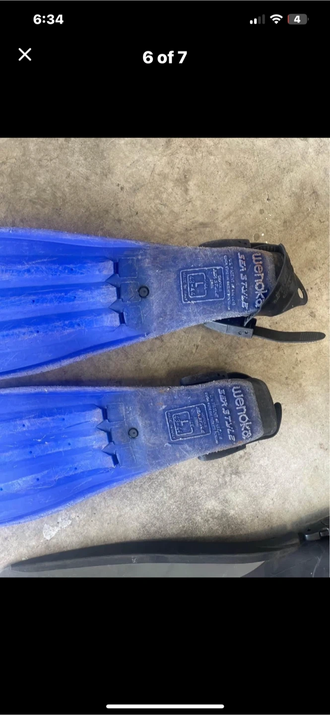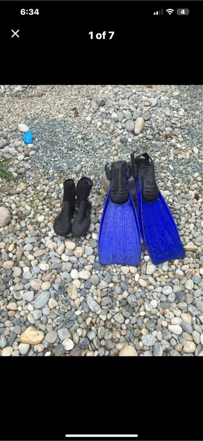 Selling a pair of Wenoka Sea Style fins in size L (43-44). Also included is a pair of Bare diving boots. XL US 10 UK 9 EUR 43-44 Great for your next diving adventure!
