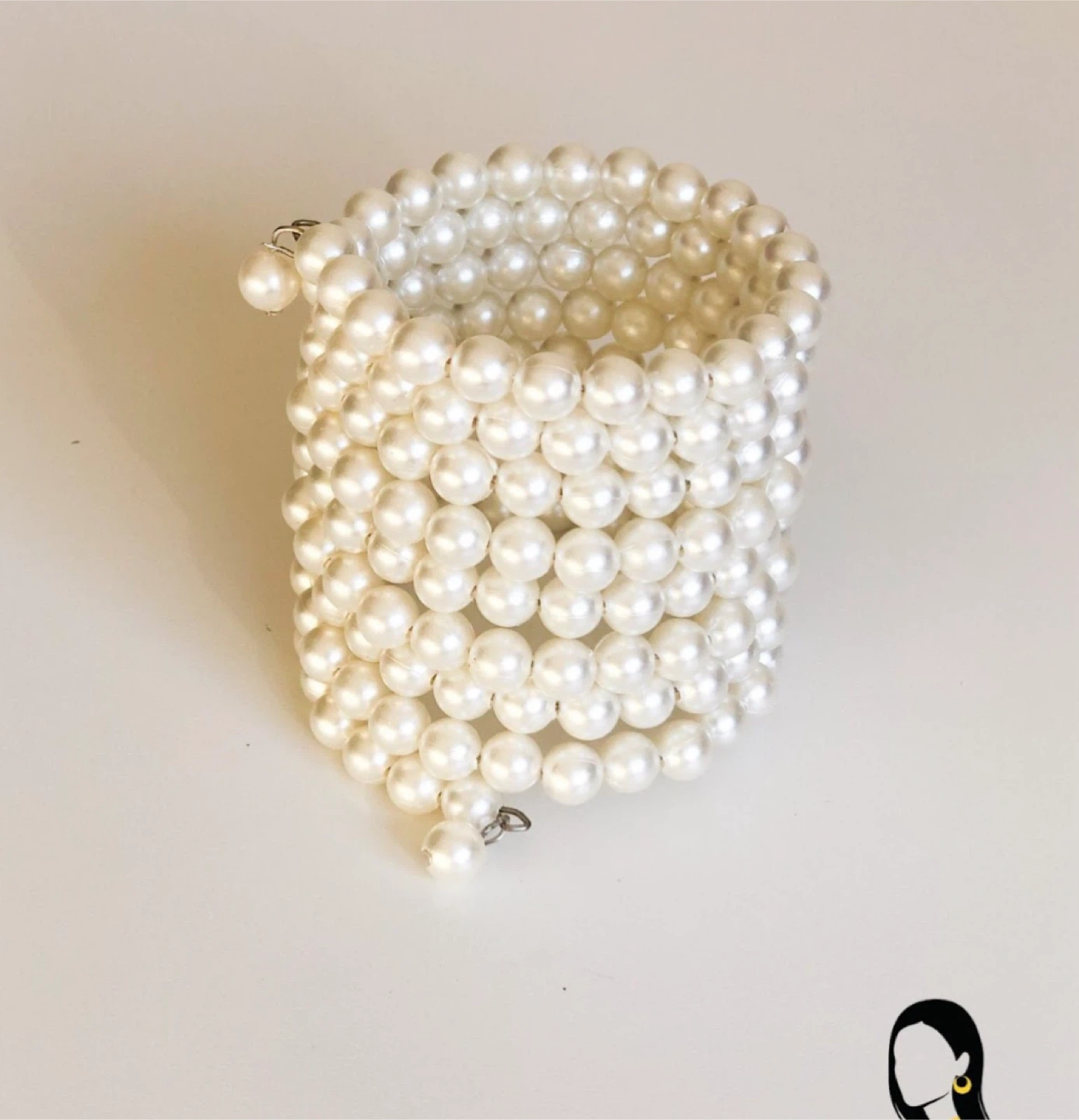Here's a lovely pearl bracelet! It's a coiled design that wraps around the wrist. Perfect for adding a touch of elegance to any outfit