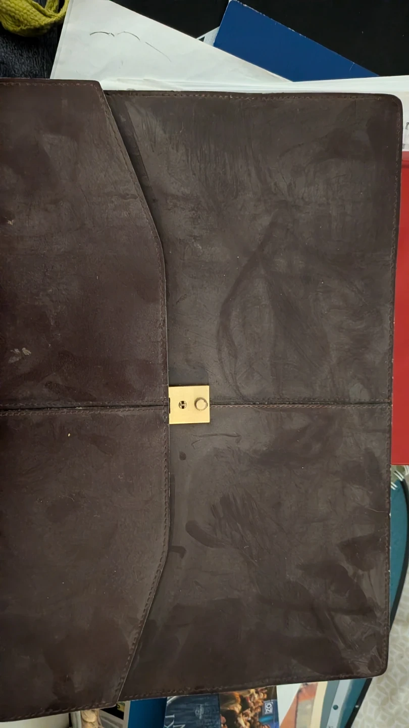 I'm giving away a brown leather portfolio - vintage. It appears to be in good condition. Perfect for carrying documents or artwork!