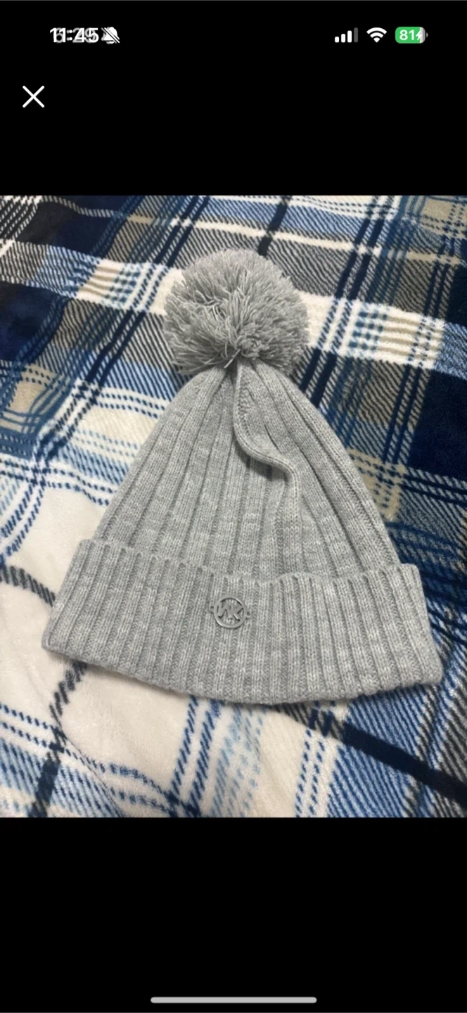 Cozy up with this stylish Michael Kors beanie! It's a lovely grey colour and features a cute pom pom on top. Perfect for staying warm during the colder months! Pick up cash only