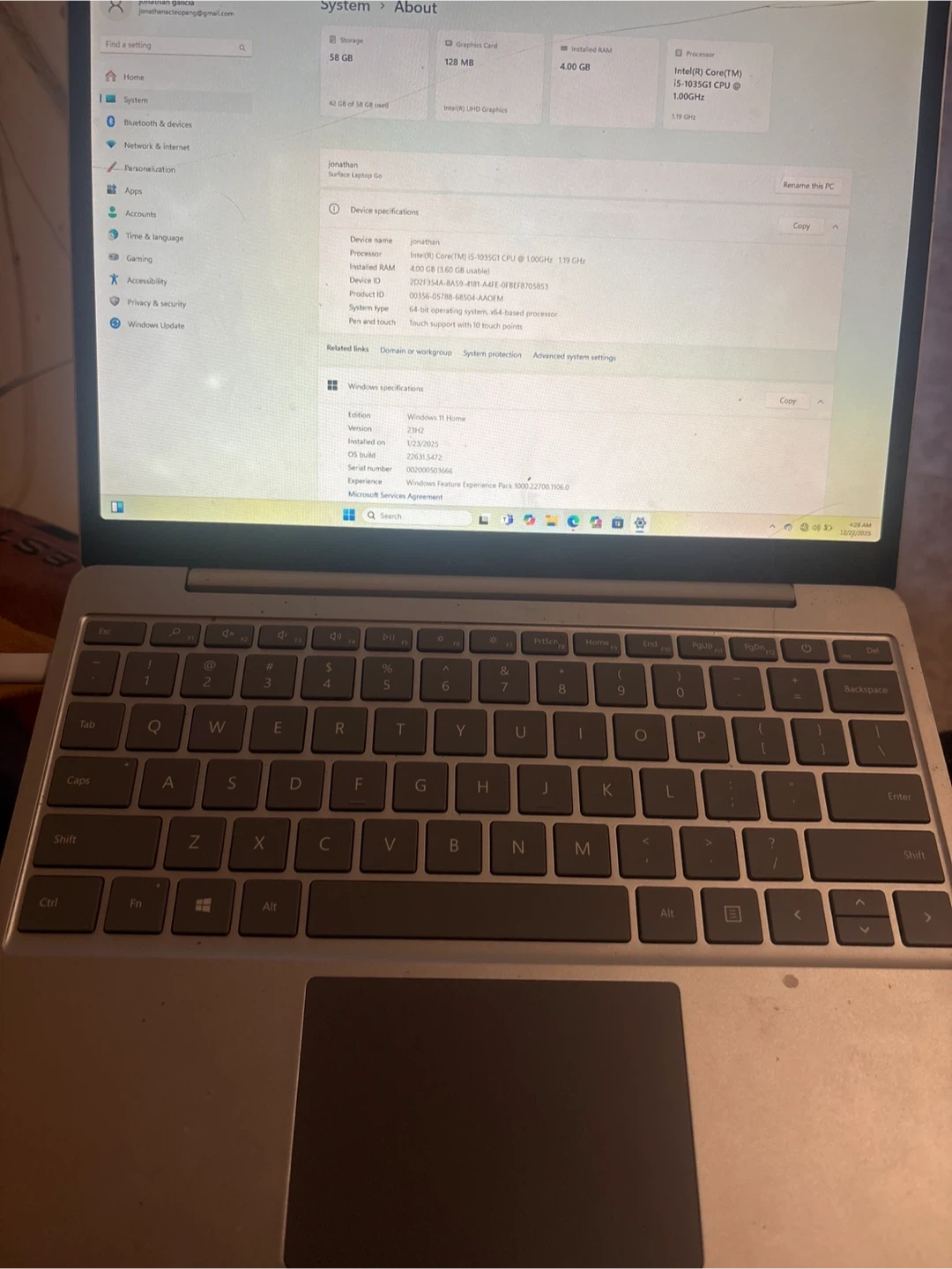 Selling a used Microsoft Surface Laptop Go.