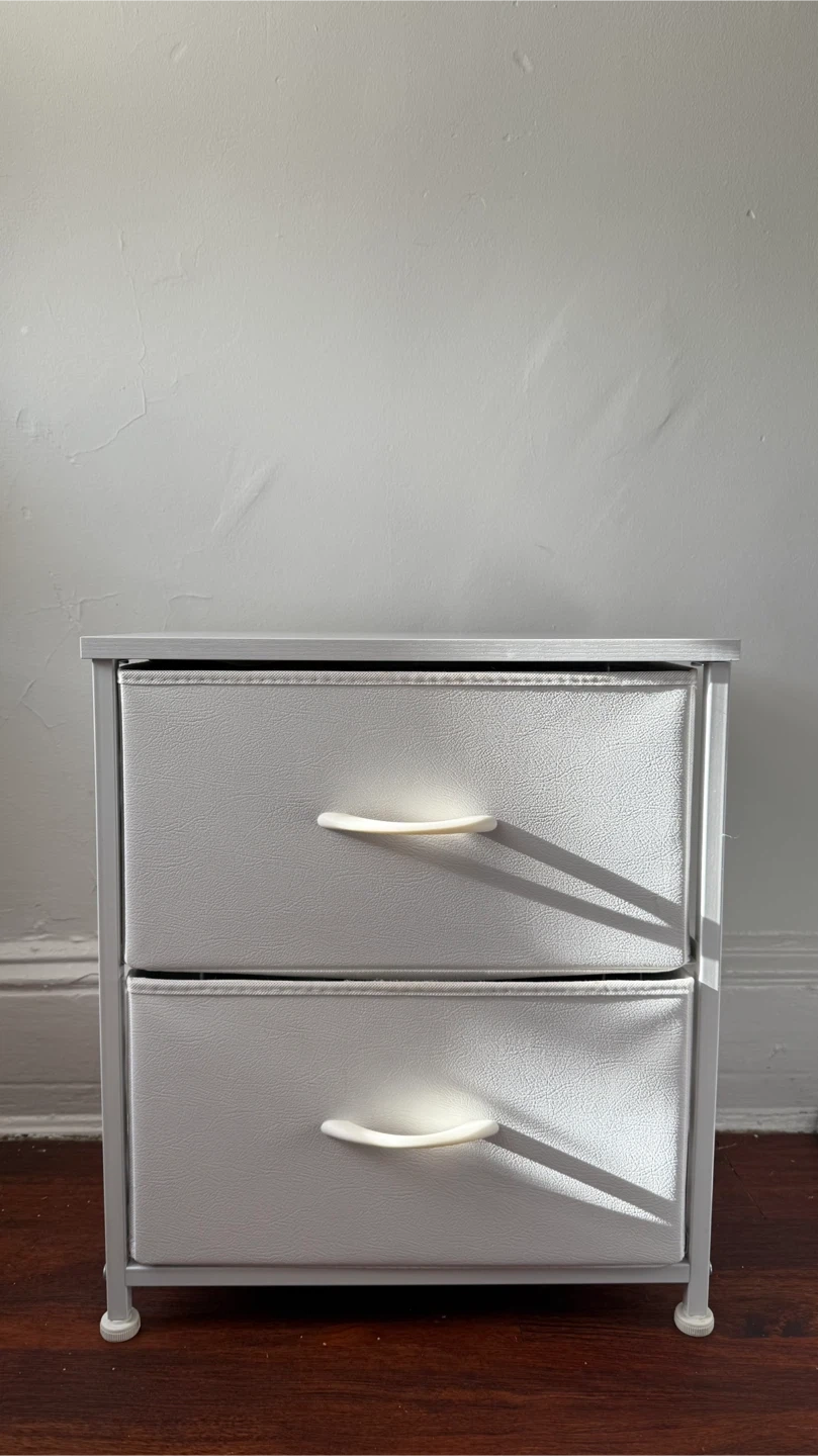 Selling a cute white 2-drawer fabric dresser! It's perfect for adding some extra storage to a small space.