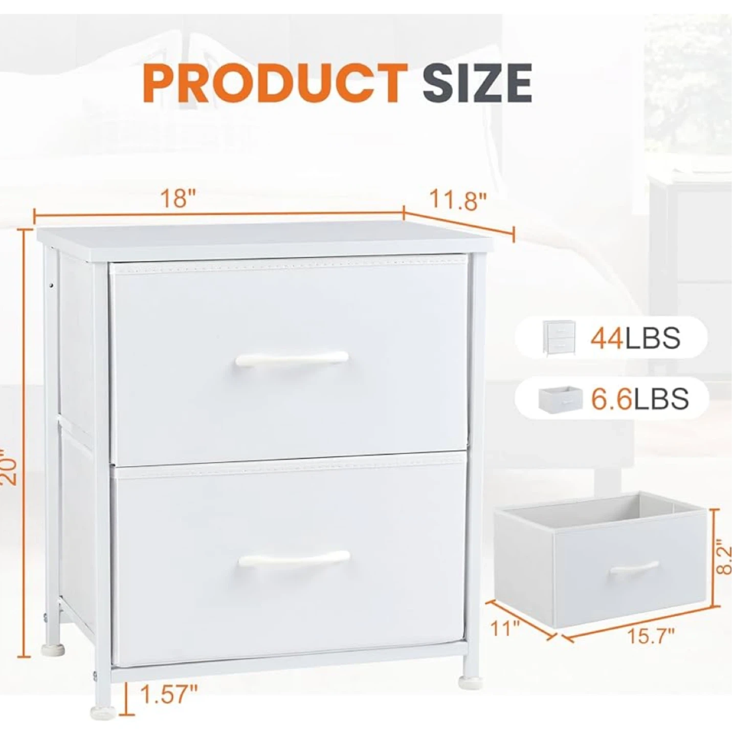 White 2-Drawer Fabric Dresser - 18" Wide