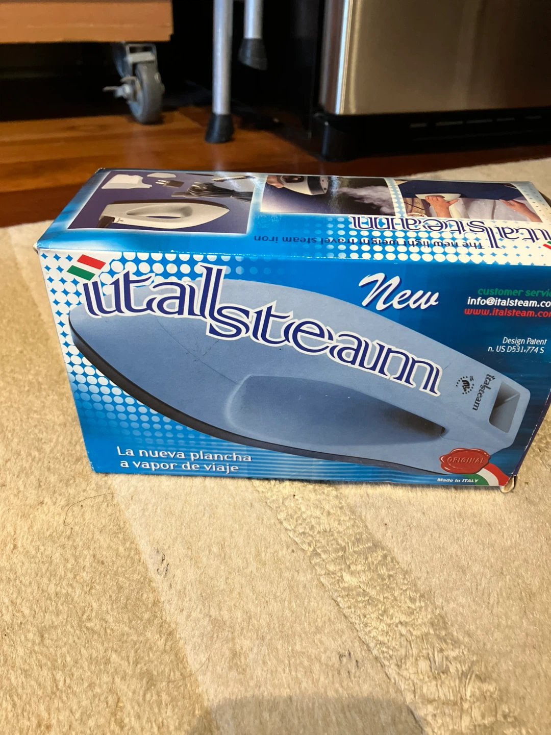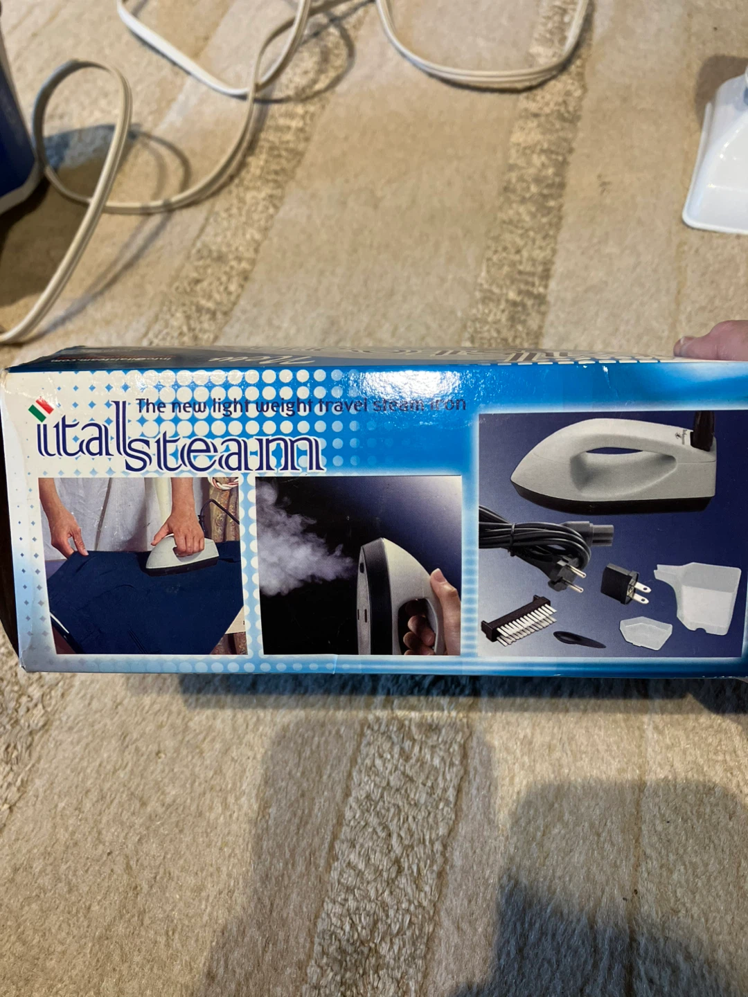 Selling a new ItalSteam travel steamer! It's lightweight and portable, perfect for travel. The box includes all original components. Excellent condition. Cash and pick up only.
