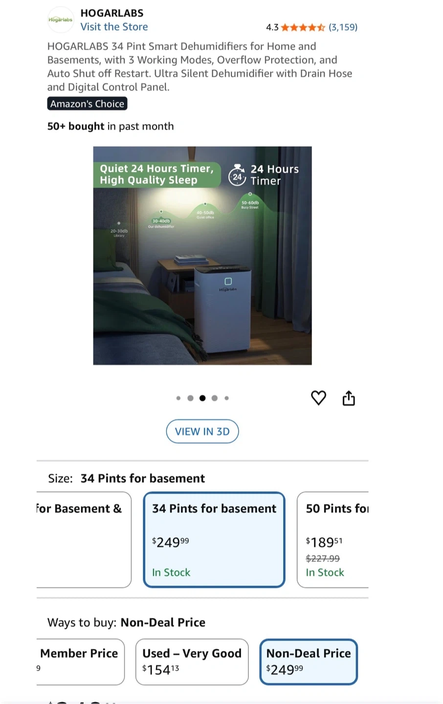 Selling a Hogarlabs Dehumidifier, 34 pints. It comes with the instruction manual and the hose.