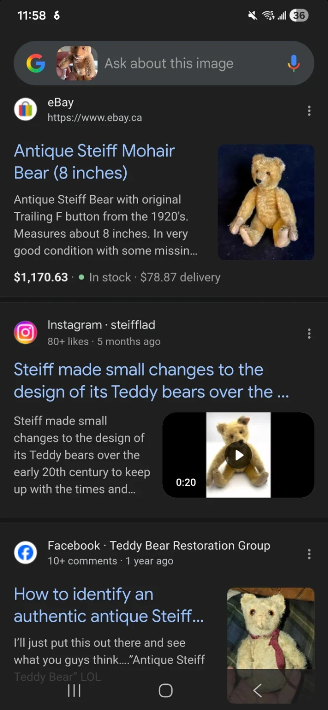 Selling a cute vintage Steiff mohair teddy bear! It's in good condition and measures approximately 8 inches tall. Perfect for collectors or anyone who loves classic toys best offer takes it