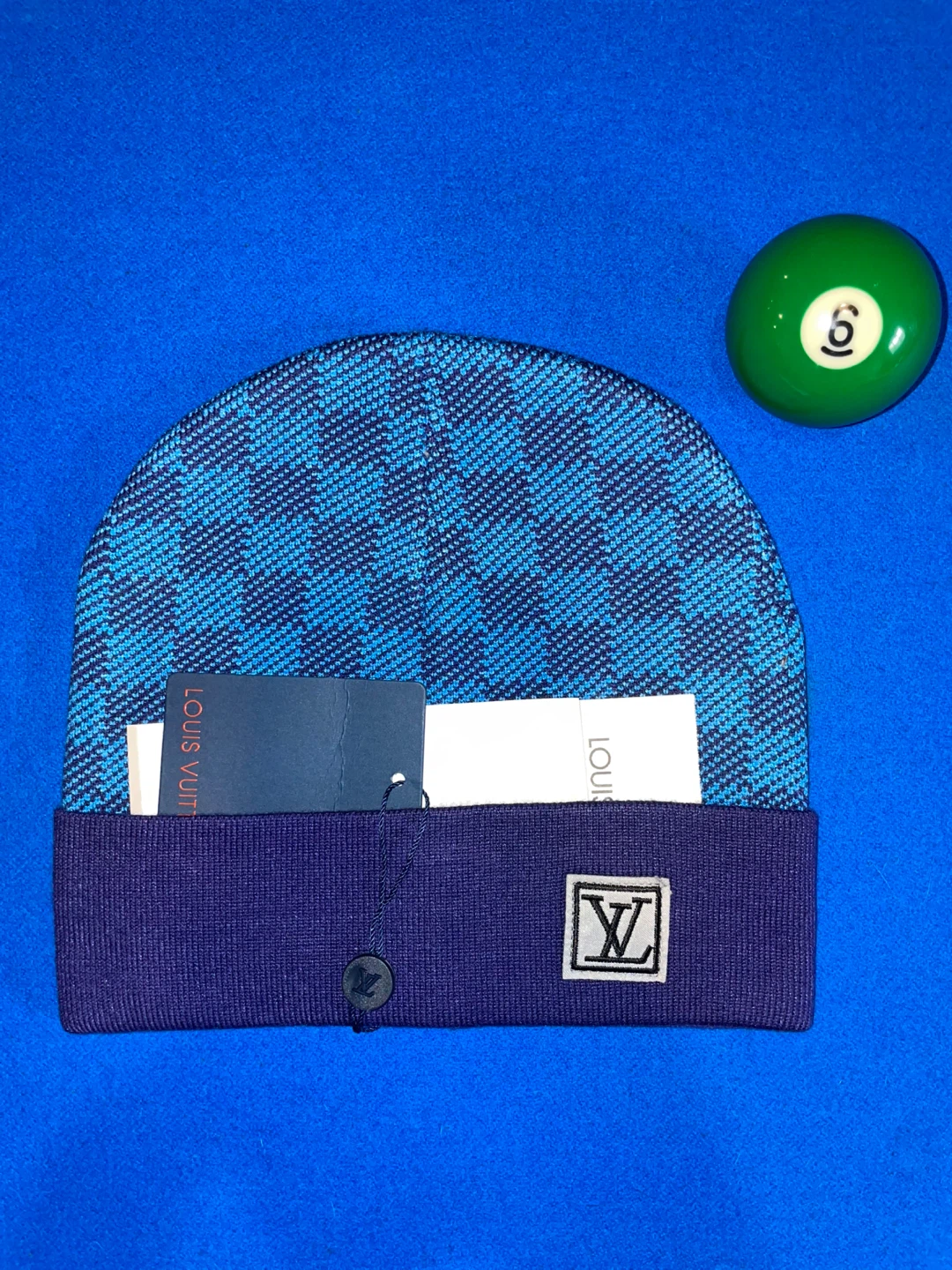 LV Blue and Navy Blue Beanie with Purchase Receipt