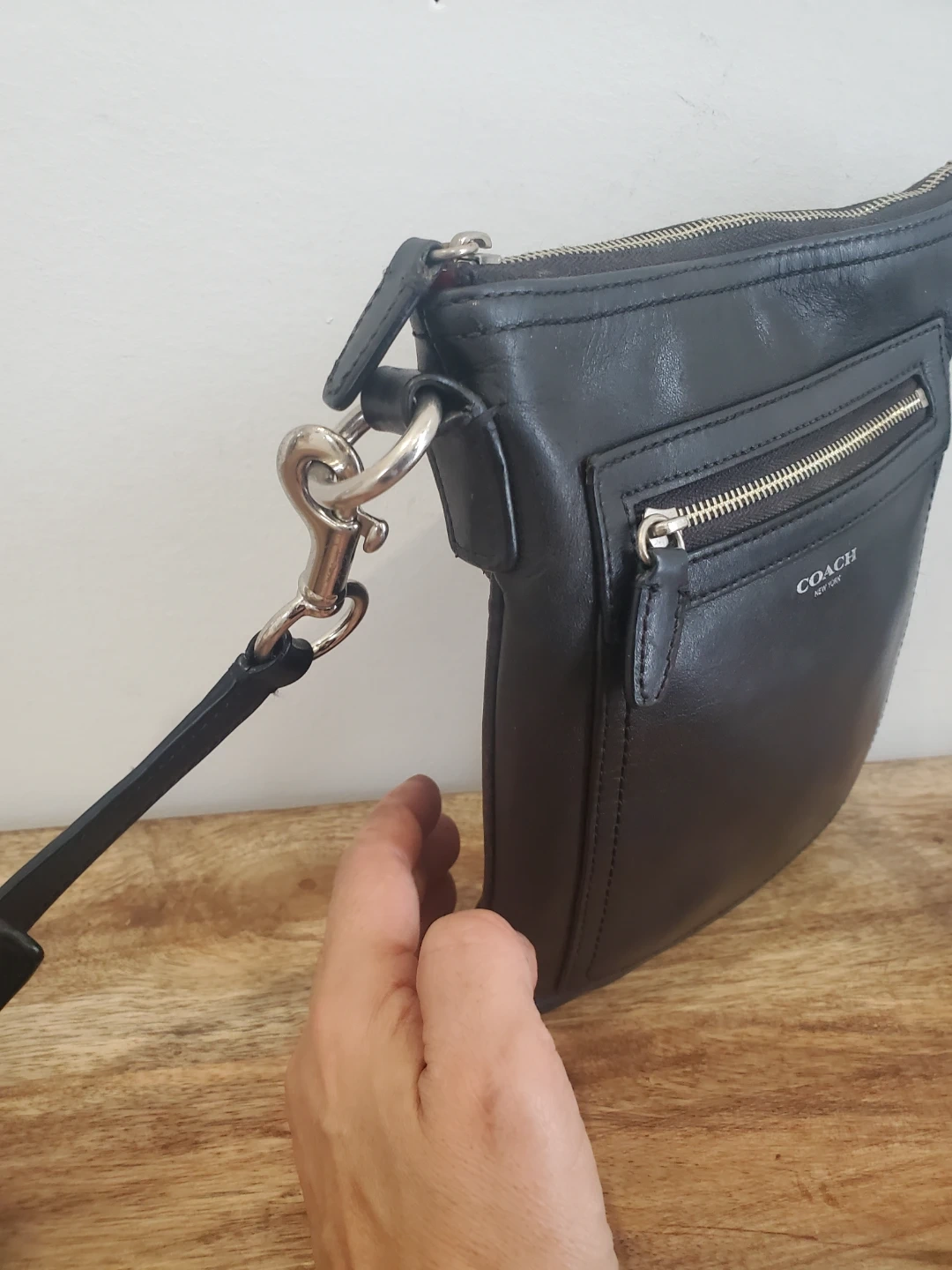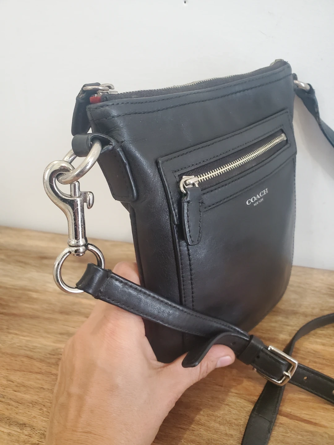 Selling a Coach black leather crossbody bag. It's in great shape and perfect for everyday use! The bag features a zippered top closure and an adjustable strap for comfortable wear. The leather is soft and supple, and the bag is lightweight and easy to carry. Perfect for keeping your essentials organized on the go