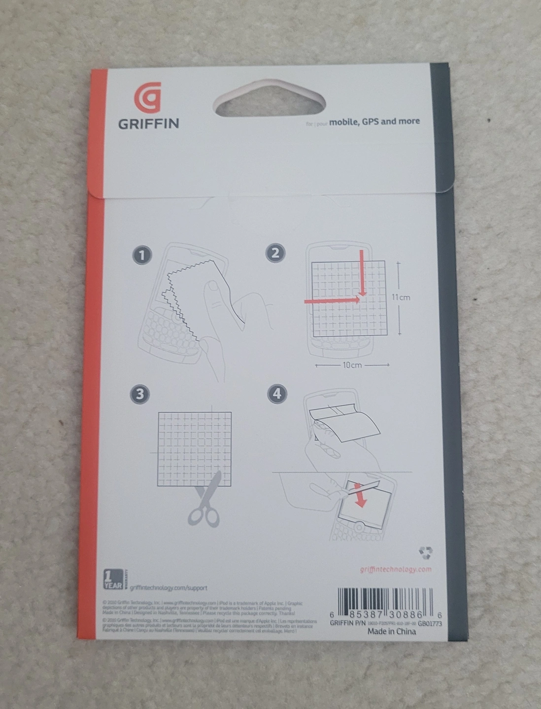 Brand Griffin Compatible devices Cellphone Item hardness 3H Special feature Scratch Resistant Unit count 1.0 count Screen size 4.3 Inches Screen surface description Glossy Number of Items 12 Manufacturer Griffin Technology UPC 685387308866 About this item Protection for screens up to 4.3" x 3.9" (11 x 10 cm) 5 cut-to-fit screen protectors Smooth-on card and cleaning cloth included