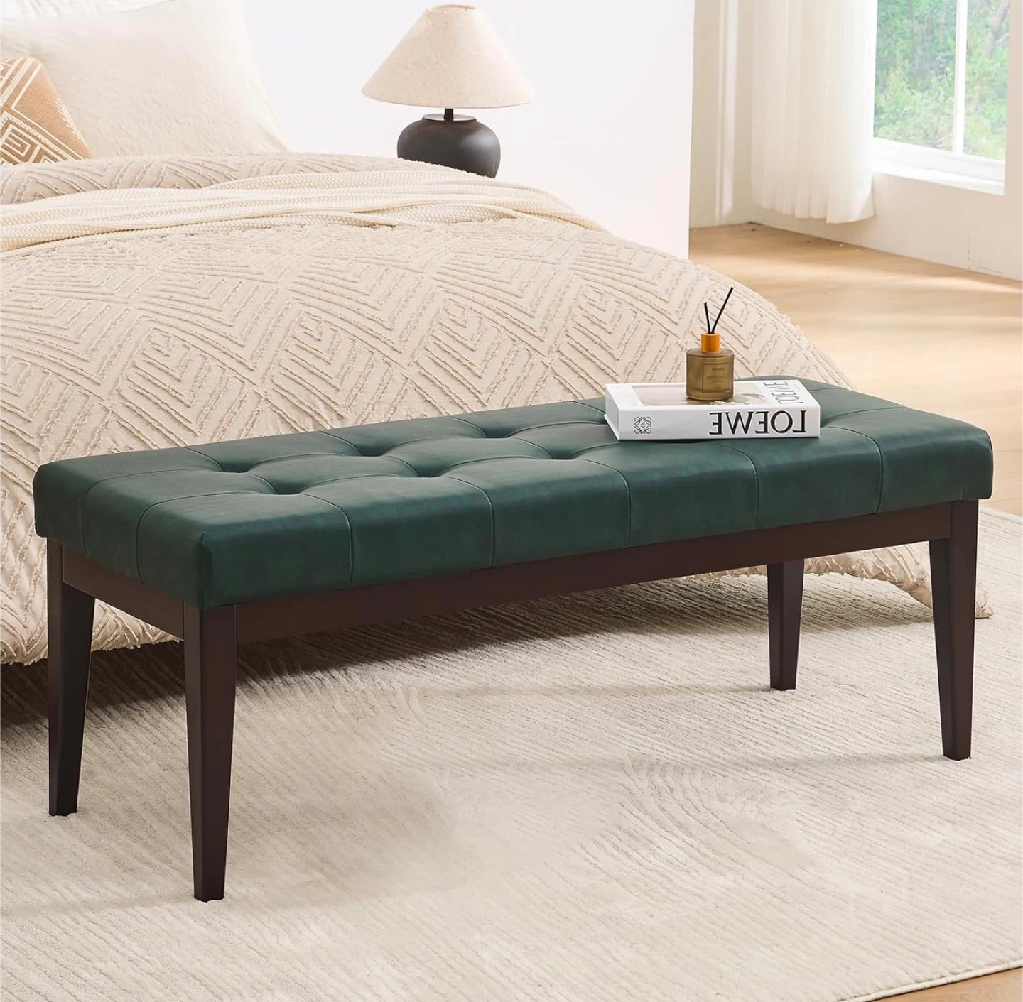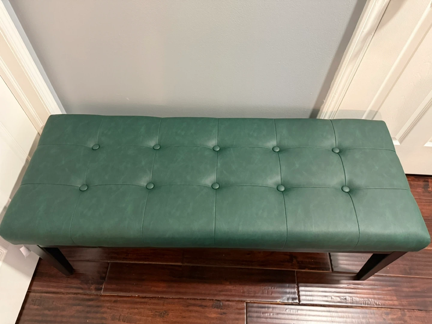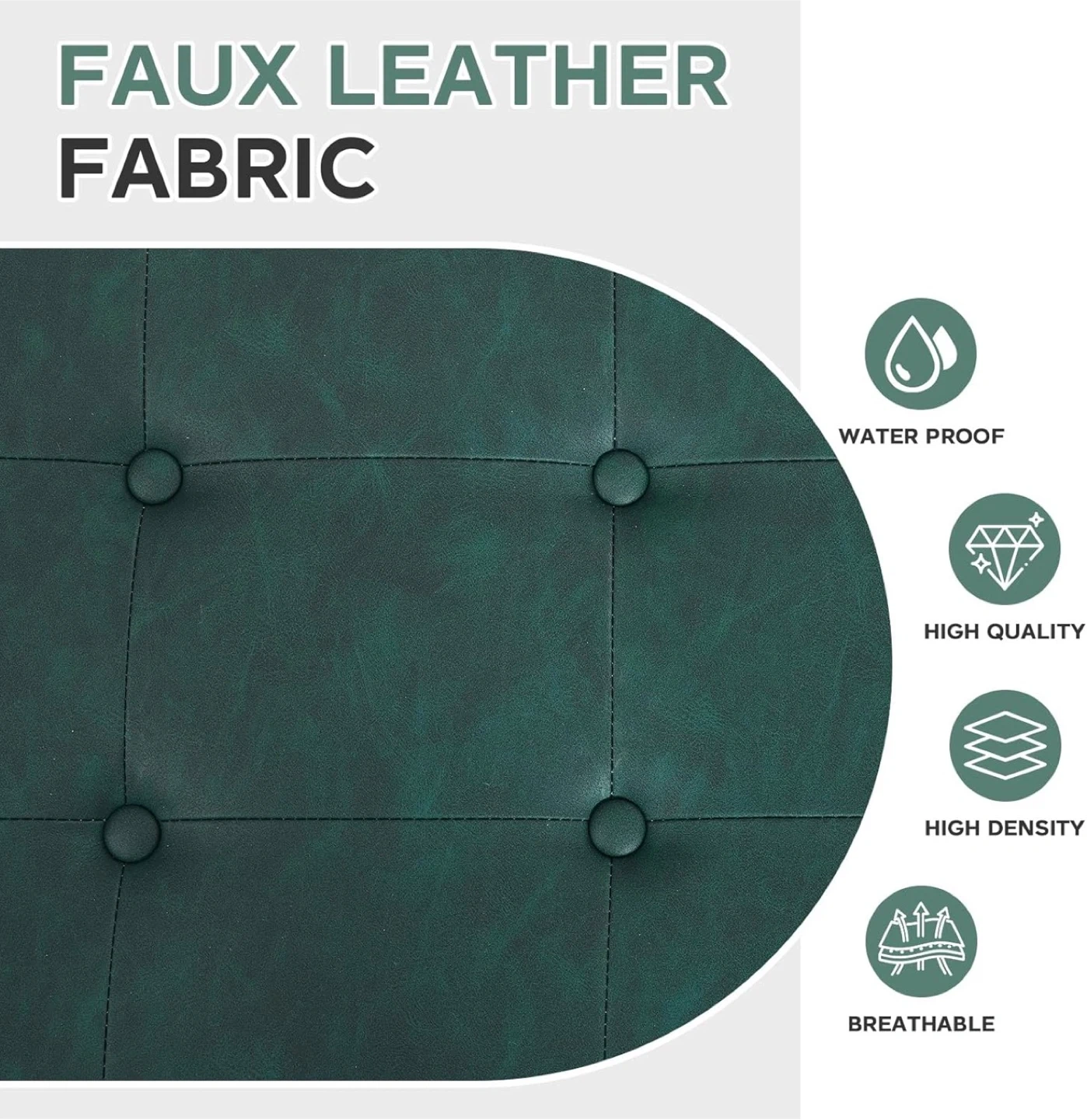 Green Tufted Faux Leather Ottoman Bench