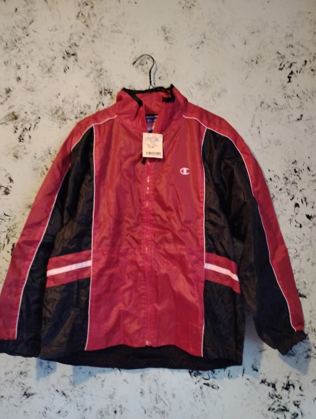 Selling a Champion jacket in red and black. It's in great condition and ready for a new owner! Still has the tag on