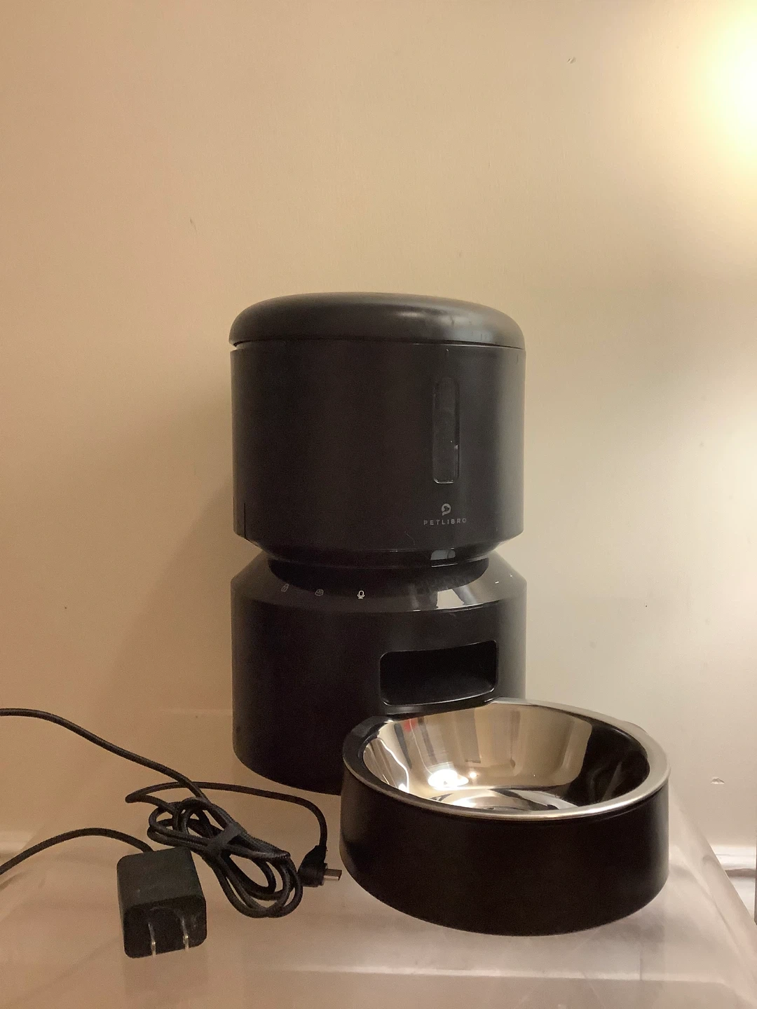 Selling a PETLIBRO automatic pet feeder in black! It comes with the bowl and charger. This feeder is great for making sure your pet is fed on time, even when you're not home